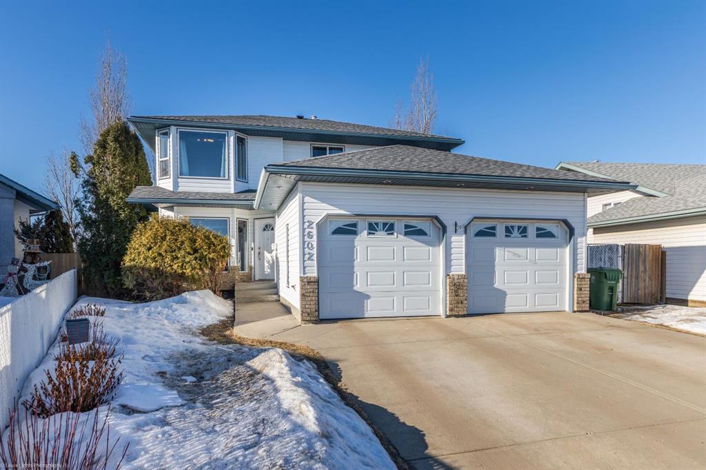This property is situated on a massive (10,290 square feet!) pie shaped lot with no back neighbours. Prime, family-friendly cul-de-sac location a short walk from Winston Churchill School and JC Park. This impressive home offers over 1,900 square feet with a functional floorplan and updated flooring. The kitchen has a large island, ample cabinetry, updated appliances and lots of storage. You'll also find main floor laundry in the 2 piece bathroom, 2 living room spaces, a dining room and a den on the main floor. Upstairs you have 4 great sized bedrooms, a full bathroom with double sinks and the primary featuring a generous sized walk-in closet and a full ensuite with double sinks. The basement is developed with a play area, large bedroom, 3 piece bathroom with a gorgeous tiled shower a cozy family room and lots of storage. This home package also has central air conditioning, a double attached heated garage and new shingles. This property has room to grow inside and out!