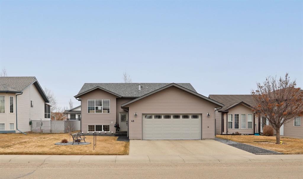 Welcome to 48 Upland Street. For those looking for a move-in-ready home and can appreciate obvious pride of ownership, take a look. This beautifully maintained 2000 built bi-level offers 5 bedrooms, 3 updated bathrooms and a thoughtfully designed open concept living space. The bright and airy main living area seamlessly connects the living room, dining space and the kitchen, creating the perfect atmosphere for family gatherings and entertaining. The kitchen underwent a complete upgrade less than 4 years ago featuring quartz counter tops, custom soft close cabinetry, new appliances and vinyl plank flooring. A large island provides extra prep space and seating, making it a natural hub for everyday living. The adjacent dining area comfortably accommodates a full size table, with easy access to the backyard deck. Good sized corner pantry and handy broom closet round out the modern conveniences while large windows allow for plenty of natural light. Fresh paint throughout enhances the home's bright and welcoming feel. The main floor boasts 3 bedrooms including a king sized primary retreat with a walk in closet and 3 piece ensuite with a jetted tub. A 4 piece bathroom serves the additional bedrooms. The fully finished basement offers in-floor heat, 2 large bedrooms, a spacious family room, 3 piece bathroom, storage room, utility room and a dedicated laundry room. The heated oversized double attached garage has been freshly painted and finished with vinyl plank flooring complete with built in storage shelving. Enjoy the outdoors on the brand new maintenance free deck (2024) featuring vinyl and glass railings plus dusk-to-dawn in step lighting. The fully fenced yard is equipped with underground sprinklers front and back for easy maintenance. Other notable improvements include new shingles (2024) and two new hot water tanks (2022). A rare find in today's market - this home is move in ready with all the major updates already done!