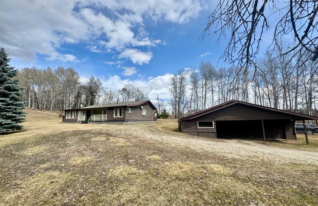 Country Charmer! This adorable acreage is located just off Hwy 12 in the Leslieville area with a nicely treed and private yard site. The one bedroom bungalow has been lovingly maintained with a large kitchen, full bathroom with a jetted tub and spacious family room with a wood burning stove. Laundry area conveniently located just off the kitchen as you head down the hallway. The front covered deck is a great spot to enjoy a quiet evening and is attached to a big, bright boot room on the north end and a seasonal use den on the south side with electric heat. The 4.9 acres is mostly treed with a tear drop driveway and large fenced garden area. 24 x 36' garage building includes an 11 x 24' storage area on the north side and the garage is wired and insulated with new shingles in 2009. The house roof was reshingled in 2020 and hot water tank replaced in 2015.