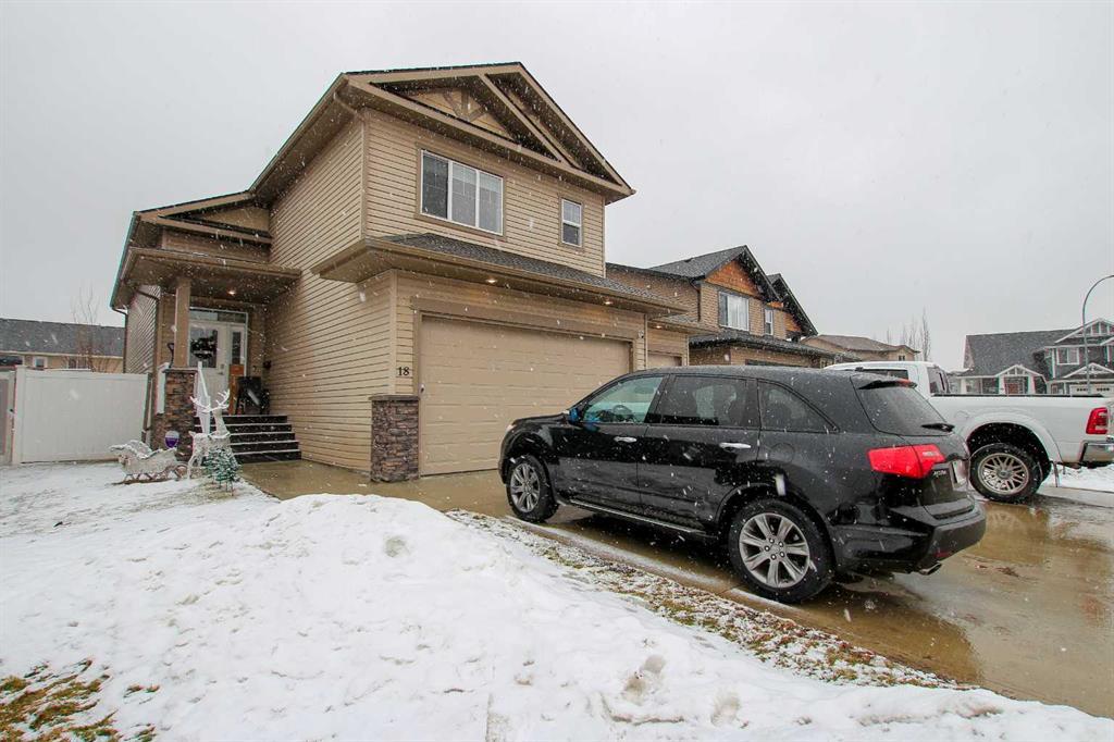 FULLY DEVELOPED 5 BDRM, 3 BATH MODIFIED BI-LEVEL LOCATED IN A CUL-DE-SAC ~ HEATED TRIPLE ATTACHED GARAGE ~ SOUTH FACNG BACKYARD ~ LOADED WITH UPGRADES THROUGHOUT ~ Covered front entry welcomes you and leads to a tiled foyer with vaulted ceilings with a chandelier ~ Fanned staircase leads to the open concept main floor ~ The kitchen offers plenty of raised maple cabinets (with pots and pan drawer, crown mouldings), full tile backsplash, ample counter space including an island with eating bar, and a spacious corner pantry ~ Easily host large gatherings in the dining room that features a box vaulted ceiling, large south facing picture window and garden door access to the deck and backyard ~ The living room features more large south facing windows offering natural light, coffered ceilings with recessed lighting and a cozy fireplace with a tile surround and mantle ~ 2 generous size main floor bedrooms are separated by a 4 piece bathroom ~ The private master oasis is located on its own level and features cathedral vaulted ceilings with beams, can easily accommodate a king bed plus multiple pieces of furniture, large window with remote control blinds, spacious walk in closet with built in shelving and 4 piece ensuite with an oversized vanity, separate walk in shower and soaker tub ~ The fully finished basement has over 9' ceilings and has in-floor heat ~ The family room is a generous size, has a bar with built in cabinets and a bookshelf/hidden door with secured access to a storage space ~ Two large bedrooms (one with a walk in closet) ~ 5 piece bathroom has an oversized vanity with dual sinks ~ Laundry and ample storage space ~ The triple attached garage has a gas heater, is insulated, finished with painted drywall and man door to the backyard/fenced in dog run ~ The sunny south facing backyard is fully fenced (vinyl), has an RV gate access to the alley, is landscaped with well established trees and still has plenty of yard space ~ Other great features include; Central air conditioning, central vacuum roughed in ~ Located in a cul-de-sac, walking distance to schools, parks, walking trails, with tons of shopping and restaurants close by ~ Pride of ownership is evident!