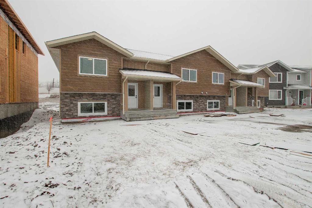 BRAND NEW BUILD ~ FULLY DEVELOPED 3 BEDROOM, 2 BATH END UNIT ~ 1572 SQ. FT. OF FINISHED SPACE ~ CONTEMPORARY DESIGN, TONS OF UPGRADES & EXCEPTIONAL CRAFTSMANSHIP ~ Stone accents, modern siding and a covered front entry create eye catching curb appeal and welcome you to this brand new home ~ The foyer has raised ceilings accented with a chandelier and offers ample closet space ~ The open concept main floor features high ceilings, luxurious vinyl plank flooring, and large windows that fill the space with natural light ~ The stunning kitchen features gorgeous stone countertops, a sleek tile backsplash, and beautifully crafted cabinetry with stylish hardware, and premium lighting fixtures ~ The builder is offering a $3,000 appliance credit allowing you to select the perfect appliances to complement your new space ~ Garden door access leads to the large deck that overlooks the backyard with no neighbours behind ~ The spacious main floor bedroom can easily accommodate a king size bed plus multiple pieces of furniture, and has a large closet with built in organizers and shelving ~ 4 piece main bathroom features a stone countertop vanity with upgraded cabinetry, tile backsplash, upgraded hardware and lighting ~ The fully developed lower level has large above grade windows, high ceilings and under floor heating roughed in ~ The family room is a generous size, has a large window overlooking the front yard and access to the storage crawl space ~ 2 generous size bedrooms (one with a walk in closet) share a 4 piece bathroom features a stone countertop vanity with upgraded cabinetry, tile backsplash, upgraded hardware and lighting ~ Laundry hook ups in their own room with additional space for storage ~ Large backyard has alley access, topsoil to grade in the backyard, sod in the front yard and side fencing will be completed by the builder ~ Alberta New Home Warranty Coverage ~ Located close to numerous walking trails & wetlands, parks and playgrounds, with easy access to schools, shopping and all other amenities ~ Move in ready with immediate possession available ~ 89 Athens Road also available.
