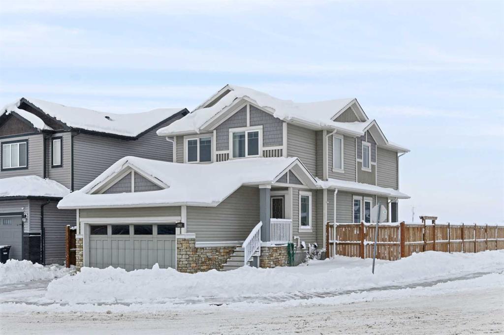 Welcome to Lakewood, Strathmore’s vibrant and up-and-coming lake community with mountain views! This stunning 2-storey, detached home, built in 2015, is designed to impress with its modern and contemporary style and is available for immediate possession. Perfectly suited for singles, couples, and families, this home sits on a prime corner lot and offers a double heated attached garage, plenty of additional parking, new shingles and a beautifully fenced and landscaped yard complete with a covered deck for year-round enjoyment. Its location is ideal, just steps away from parks and pathways, providing easy access to outdoor activities and natural beauty. The interior is equally remarkable, starting with a spacious and welcoming foyer that features a large closet and a conveniently located half bath just off the garage entrance. Central air for those hot summer days. The main floor boasts an open-concept layout, highlighted by a gorgeous white kitchen with ample cabinetry, quartz countertops, a large island, a pantry, and stainless steel appliances. The living room offers a cozy gas fireplace, perfect for relaxing evenings, while the dining area, with its large windows, creates a bright and inviting space for meals and gatherings. Upstairs, you’ll find three generously sized bedrooms, a versatile bonus room with skylights, and a full bathroom. The luxurious primary suite is a retreat in itself, featuring a walk-in closet and a spa-inspired ensuite with dual sinks, an oversized vanity, a glass shower, and a relaxing soaker tub. For added convenience, the upper level also includes a laundry room, making chores a breeze. The fully developed basement expands your living space with a large family room, 2 more bedrooms, a full bathroom, and plenty of storage and utility space plus passive radon collection system installed. Whether you’re entertaining, accommodating guests, or enjoying a quiet family night, this home offers the flexibility to meet all your needs. This property combines contemporary design, a functional layout, and a fantastic location in a thriving community, a short 30 minute commute to Calgary. Excellent school options and free busing too! Don’t miss the chance to make this beautiful home in Lakewood your own. Contact your favorite realtor today for a private viewing and start your journey toward exceptional living!