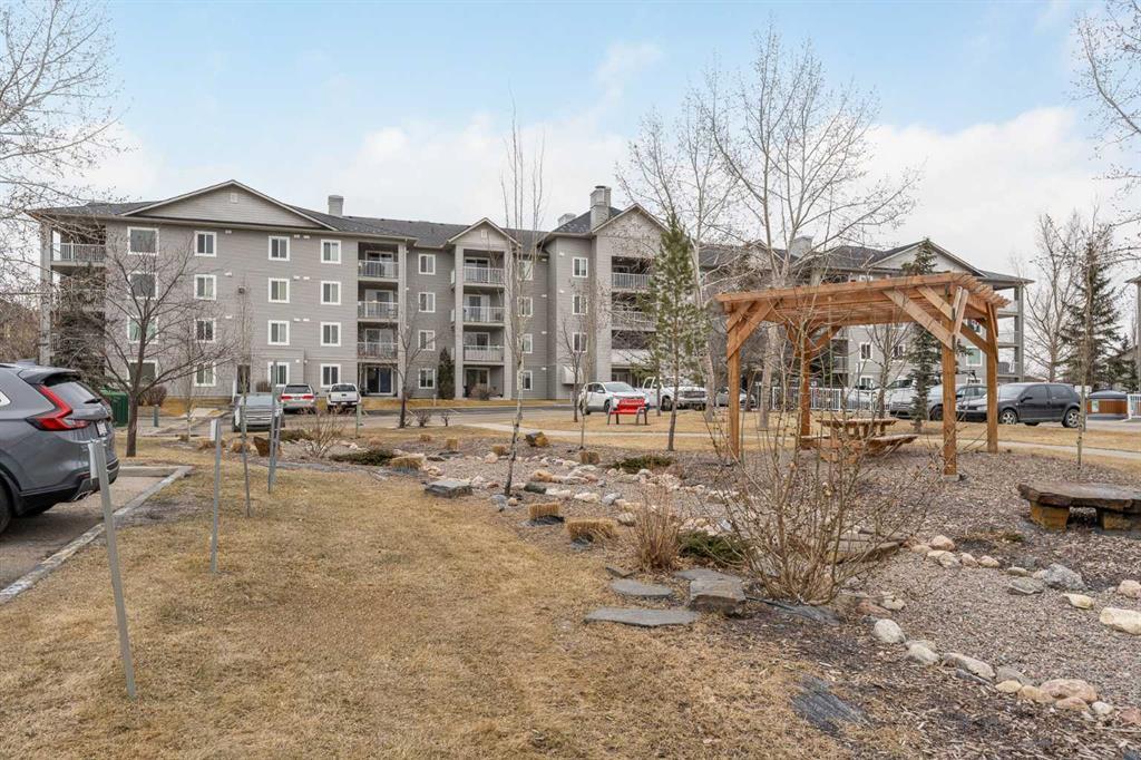 Welcome unit 3103 located at 604 8 Street in Airdrie. This beautifully maintained 2-bedroom condo combines thoughtful updates with everyday functionality, starting right at the front entry with a welcoming feel and a smart layout that flows effortlessly. Step into the modernized kitchen, where you'll find granite countertops, sleek modern cabinet doors, and a full suite of upgraded appliances. Whether you're cooking for one or entertaining guests, you'll appreciate the abundance of counter space and storage that makes this kitchen both stylish and practical. Just beyond, the spacious living room opens up, featuring a beautiful stone mantle fireplace—the perfect focal point for cozy nights in. There's plenty of room to comfortably fit your full-size furniture and create a warm, relaxing space to unwind or entertain. From the living room, step outside onto your West-facing ground floor patio. This covered outdoor space comes complete with a gas line for your BBQ, making it an ideal spot to enjoy those long summer evenings. Plus, it offers easy access for bringing in groceries or for anyone needing mobility-friendly entry. Back inside, explore the two well-appointed bedrooms—both offering ample space, natural light, and flexibility to suit your lifestyle. Whether you're setting up a home office, guest room, or private retreat, these rooms adapt to your needs. The renovated bathroom is another standout feature, complete with a semi-curbless shower—a modern, stylish, and accessible upgrade. Throughout the home, you’ll notice updated fixtures, new doors and a fresh coat of neutral paint, giving the space a clean, contemporary feel that’s ready for your personal touch. There is a titled heated underground parking stall located mere steps to the elevator. This is a home that blends comfort, function, and location Condo fees include Electricity, Gas and Water— don't miss your chance to make it yours.