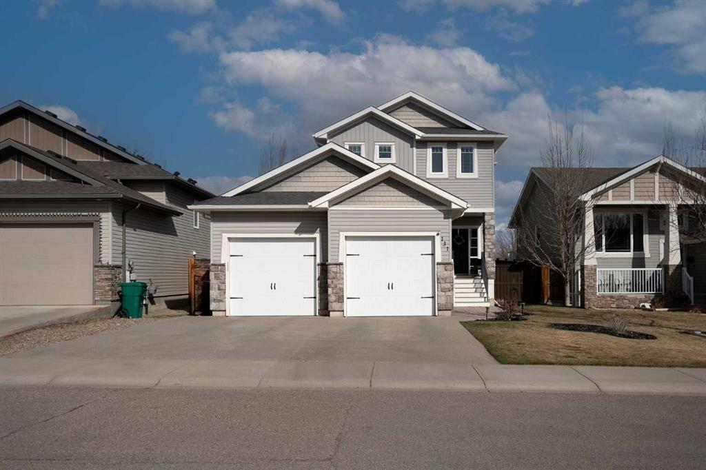 Welcome to this stunning two-level home, nestled in the tranquil and highly sought-after neighborhood of Riverstone, just moments away from the serene river valley, local parks, schools, and a charming pond. This beautiful property boasts modern features throughout, offering both comfort and style for a growing family. The open floor plan creates a bright and inviting atmosphere, perfect for everyday living and entertaining. The living room is centered around a cozy gas fireplace, ideal for those chilly evenings. The spacious kitchen is a chef’s dream, featuring a large pantry and plenty of counter space for meal preparation. The flooring on this level was recently updated and included is exterior lighting in the eaves controlled via an app. Conveniently located, the garage opens directly into a spacious laundry room, adding to the home’s functionality. Upstairs, the master bedroom is a true retreat, complete with a large ensuite and a walk-in closet, offering both luxury and privacy. Two additional well-sized bedrooms share a full bathroom, perfect for family or guests. The fully finished basement adds even more living space, with a large rec room and an additional bedroom and bathroom, perfect for entertaining or accommodating visitors. Step outside into the private backyard, offering a generous space for outdoor activities or relaxation. Included is a play structure so you can keep an eye on your little ones, and the alley access provides even more privacy from your back neighbours. This home is truly a perfect blend of modern living and a peaceful, family-friendly location.