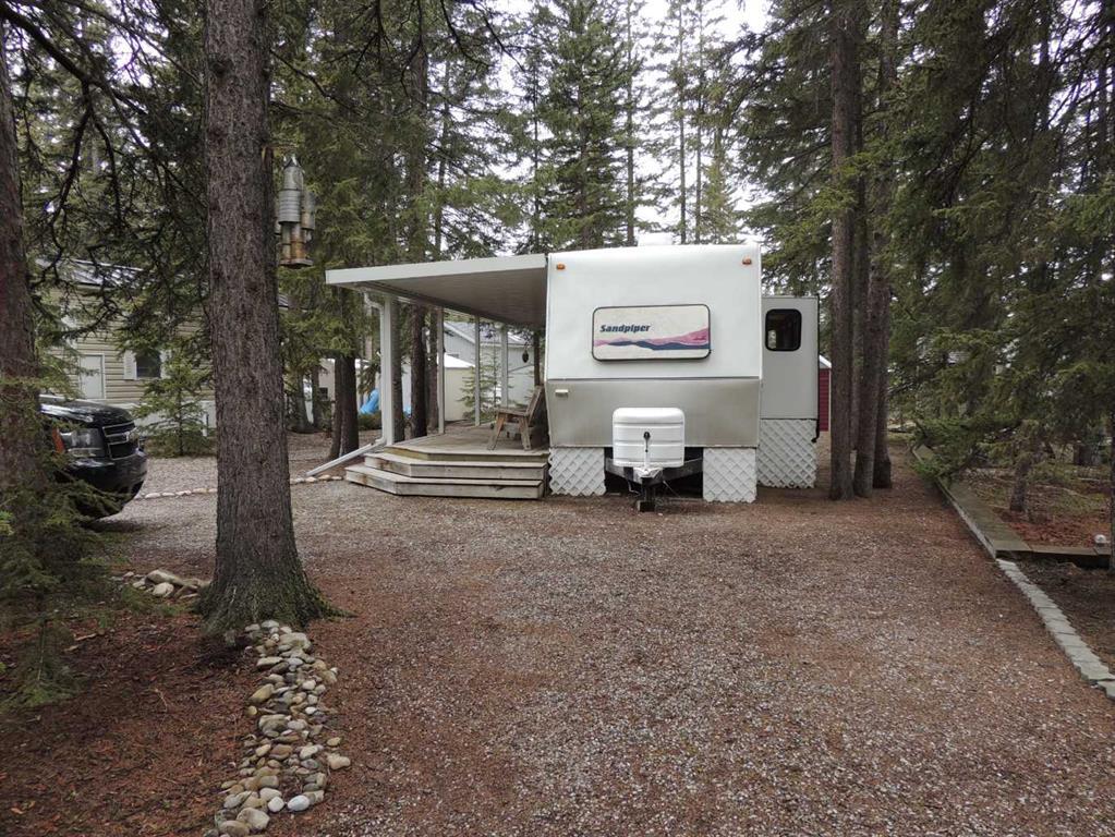 Great opportunity get this nice RV/Lot package fronting onto a natural common space and facing East on a secluded, private cul-de-sac. Just a beautiful large Lot amongst the trees. Lots of room for a Park Model if you ever wanted to upgrade. The rear yard has your shed and also a Firepit and seating area. The Playground, Basketball/Pickle Ball courts, and a gazebo coming this Spring, are all within minutes walking or biking distance . Included with the lot is an older 1999 Forest River Sandpiper Trailer in Very nice condition, ( As-Is ) with a front bedroom, Living/Eating area as well as Bunks at the rear for the kids or Grandkids. There is also a full length wooden Deck with a Full Length Metal Awning which extends your living area. Tall Timber has an amenities building that has washrooms and showers which are open year-round for those who want to winter camp. Tall Timber RV resort is located on the eastern edge of friendly Sundre AB. Shopping and Restaurants are a short drive from the Park and can also be biked and is walkable as well. Tall Timber has many amenities including an Indoor Pool and Hot tub, Horseshoe Pits, Frisbee Golf, Baseball Diamond, Annual Rodeo Grounds in town as well as a Rec Centre onsite for occasional gatherings. This is a well managed Park with low yearly Fees ( $1746.09) which includes Power, Water and Sewer. Tall Timber is a seasonal Park open from approx late April until early October. (Winter Power and water ( in the amenities building) is available for a fee for those winter campers). Tall Timber RV resort has an active volunteer committee which plans many in-park events throughout the season such as Yard Sales, Farmers Market with local vendors, Food trucks, Dances, Dart Tournaments as well as several planned events for the kids too. You can be as busy as you want OR just sit back and enjoy the solitude of the park. Located about an hour north of Calgary on the Cowboy Trail - Highway #22.