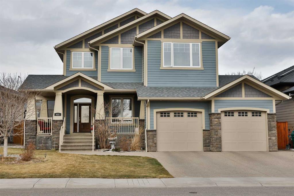 Picture yourself on your front porch, soaking in the stunning coulee views—this is the lifestyle waiting for you in prestigious Riverstone! Nestled in a quiet cul-de-sac off Stonecrest Point, this custom-built Cedar Ridge home is a true masterpiece, blending modern design with an urban loft feel and soaring cathedral ceilings.