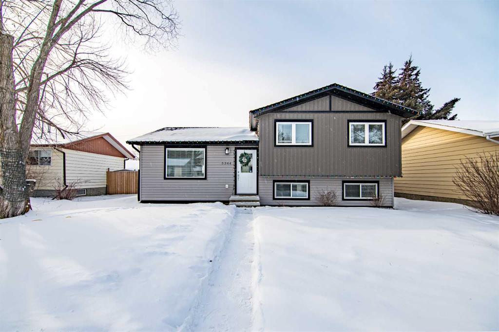 Gorgeous fully renovated 4 level split with a newer 22x24 heated garage in the heart of Blackfalds. This fantastic family home awaits new ownership boasting 4 bedrooms and 3 bathrooms. The open design on the main floor is sure to impress with a bright living room and functional kitchen featuring stainless steel appliances, granite countertops including the large island, stainless sink overlooking the backyard and tile backsplash. The upper floor showcases the huge primary bedroom suite fully equipped with a large walk-in closet and 3pc ensuite. The additional bedroom and bathroom with a soaker tub complete the upper floor. The lower level has separate entrance with easy access to the laundry room, 4pc bathroom, and of course the large family room accompanied by a newer shiplap feature wall & electric fireplace. The basement is fully finished with two more bedrooms and storage. The large West facing backyard has a 16x12 deck, mature trees, ample room for the kids to play and of course access to the detached garage. Everything has been done from exterior, windows, flooring, doors, trim, bathrooms, furnace... the list goes on and on! This house has it all and is move-in ready!