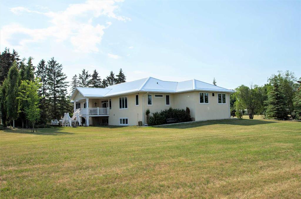 This thoughtfully designed home offers that perfect balance of luxury and comfort. The welcoming front entrance takes you around to an open and airy floorplan with a formal dining area and a large sitting area with windows that provide an abundance of natural light. The kitchen has beautiful, Corian countertops and is outfitted with stainless steel appliances. There is another dining area with patio doors offering access to a covered, upper deck, ideal for entertaining. Around the corner is an elegant primary bedroom with a 14’ x 6’ walk in closet, and an ensuite to the side. There is a double vanity, a separate room for the custom shower, and another room for the toilet and bidet. On the other end of the main floor are 2 bedrooms, each with two huge windows. The 4 piece bathroom, with custom tile tub/shower, sits between these rooms. There is a main floor laundry room as well. Downstairs is a huge open area, giving everyone their own space. To the left is a family room and to the right, there is another full kitchen, ideal for long-term guests or entertaining. As on the main floor, there are two bedrooms and a full bathroom in between them. There is a home gym, a large storage room, and the utility room has another washer and dryer set. There is a 1024 sq/ft, triple car garage to house your vehicles plus your toys. The exterior of this home is acrylic stucco and the landscaping is phenomenal, with perfectly spaced rows of spruce enveloping 3 sides of the property. The sidewalk leading up to the front door is bordered with beds of shrubs and perennials and takes you to a covered deck done in composite decking and anchored with square columns. The back decks are similarly styled, with the ground level deck measuring 14’6” X 24’, and the upper level, covered deck measuring 14’ X 18’. This home is equipped with a security system and air conditioning. With this property, you would to be able to own a large property, yet still have the convenience of living in town, fulfilling the best of both worlds!