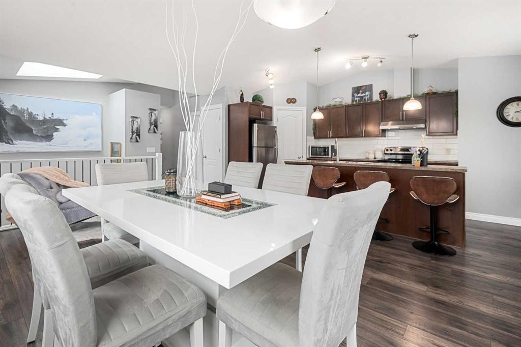 This exquisite END UNIT TOWNHOUSE offers over 1,700 sq.ft. of thoughtfully designed living space, perfect for those seeking both comfort and style. As you step inside, you'll be immediately captivated by the breathtaking VAULTED CEILINGS and a spacious flex area, while the massive SKYLIGHT above the entrance door invites an abundance of natural light, creating a bright, airy atmosphere throughout the main floor. With two generous bedrooms, including a spacious master suite complete with a walk-in closet and a beautifully designed 4-piece ensuite, this home is the perfect retreat. The modern kitchen is equipped with STAINLESS STEEL appliances and a ample sized pantry, making meal preparation a breeze. Step downstairs to your private living room, a cozy haven ideal for weekend movie nights or quiet evenings with family and friends. The wide driveway offers EXTRA PARKING SPACE, perfect for accommodating family and guests during long weekend visits. This well maintained home is move-in ready and offers the perfect balance of comfort and style in a peaceful, welcoming neighborhood. Conveniently located less than 30 minutes from the City of Chestermere and just 40 minutes from Calgary, this townhouse is close to parks, schools (K-9 and High School), and the complex features a pocket park that kids will adore. Don’t miss out on this incredible opportunity—schedule your viewing today and make this beautiful townhouse your new home!
