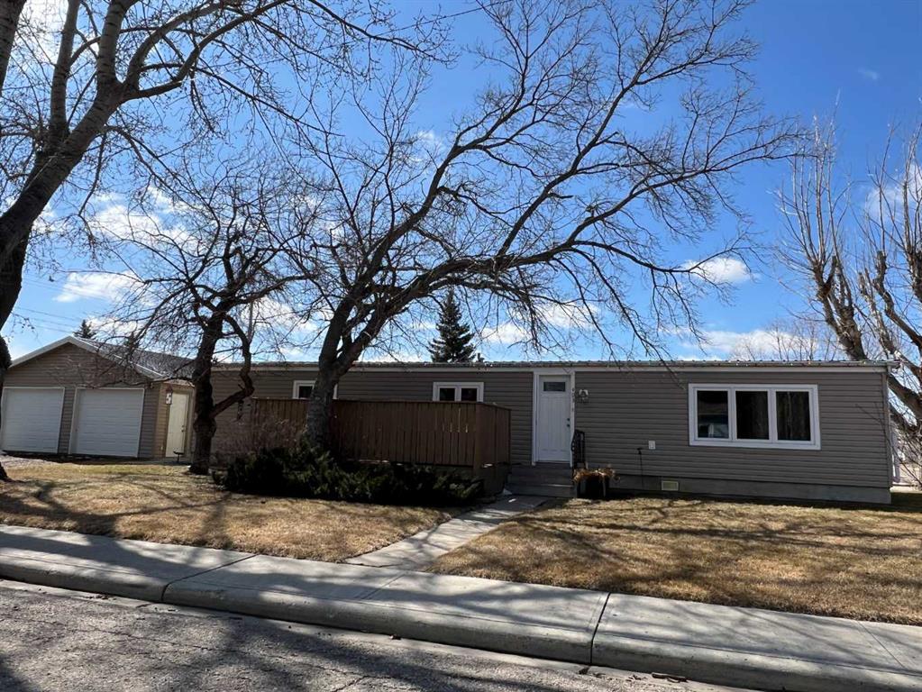 Welcome to this spacious doublewide mobile home nestled on its own corner lot in the heart of Vulcan. With approximately 1344 square feet of comfortable living space, this home offers a perfect blend of convenience and comfort. Inside, you'll find three bedrooms and one and a half bathrooms, providing ample space for family living. The layout includes a large living room, dining area, and a well-appointed kitchen, ideal for gatherings and everyday living. A separate family room adds extra flexibility, while two bedrooms complement a generous primary bedroom featuring a convenient two-piece ensuite bathroom and a large walk-in closet. The home includes a refrigerator, stove, washer, and dryer, along with a dishwasher that is being sold in "as is" condition. A combination laundry/utility room ensures added convenience. Recent updates include a new hot water tank in 2022 and a furnace replacement in 2021, providing efficiency and peace of mind. Windows, shingles, and siding were also updated approximately ten years ago. Outside, a detached double car garage offers ample storage and parking space. The vinyl siding and metal roof contribute to low-maintenance living. This property presents an excellent opportunity to enjoy comfortable living in Vulcan's welcoming community. Don't miss out on this chance to make it yours!