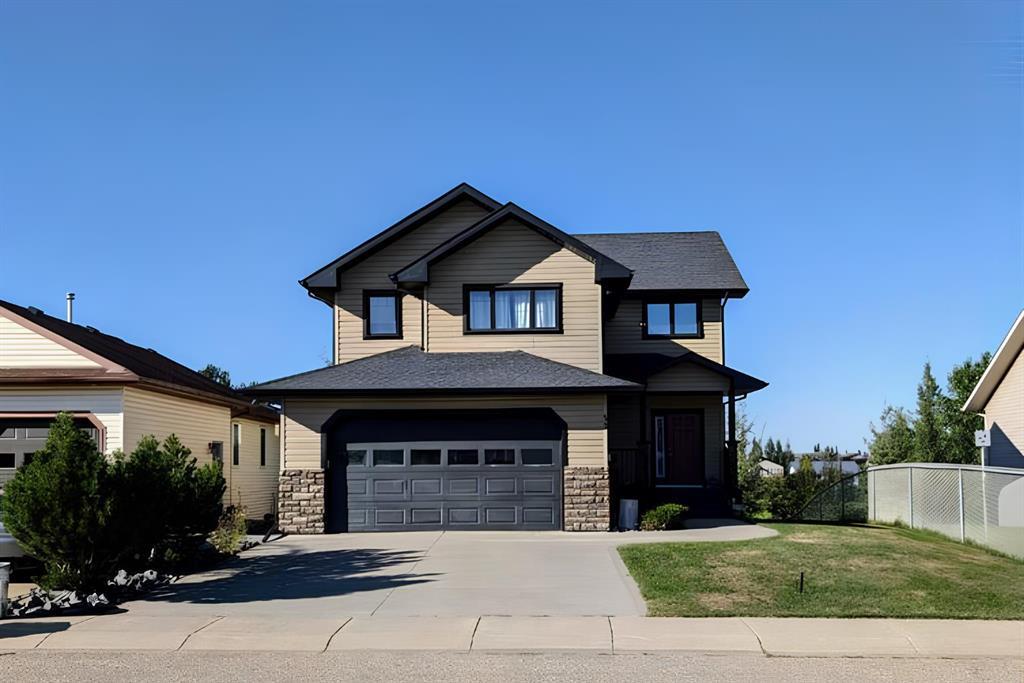 Beautiful 2 Storey fully developed 2030 sq ft with walk-out basement. This home has a prime location in a quiet crescent backing onto a green space, walking trail, and a pond. Open bright kitchen and dining area with garden door access to a 2 storey tiered deck overlooking the pond. Cozy up to a fireplace on the main level while enjoying the view. Main floor has a 2 piece bathroom and main floor laundry. Upstairs has a bonus room with built in shelving and an entertainment unit, 3 bedrooms, and a 4 piece bathroom. Primary bedroom features a view overlooking the pond, jetted tub, his/her sinks, stand up shower unit. Fully finished basement with roughed in underfloor heating including cork flooring in the games room, 4 piece bathroom, large bedroom, and wet bar rough in.