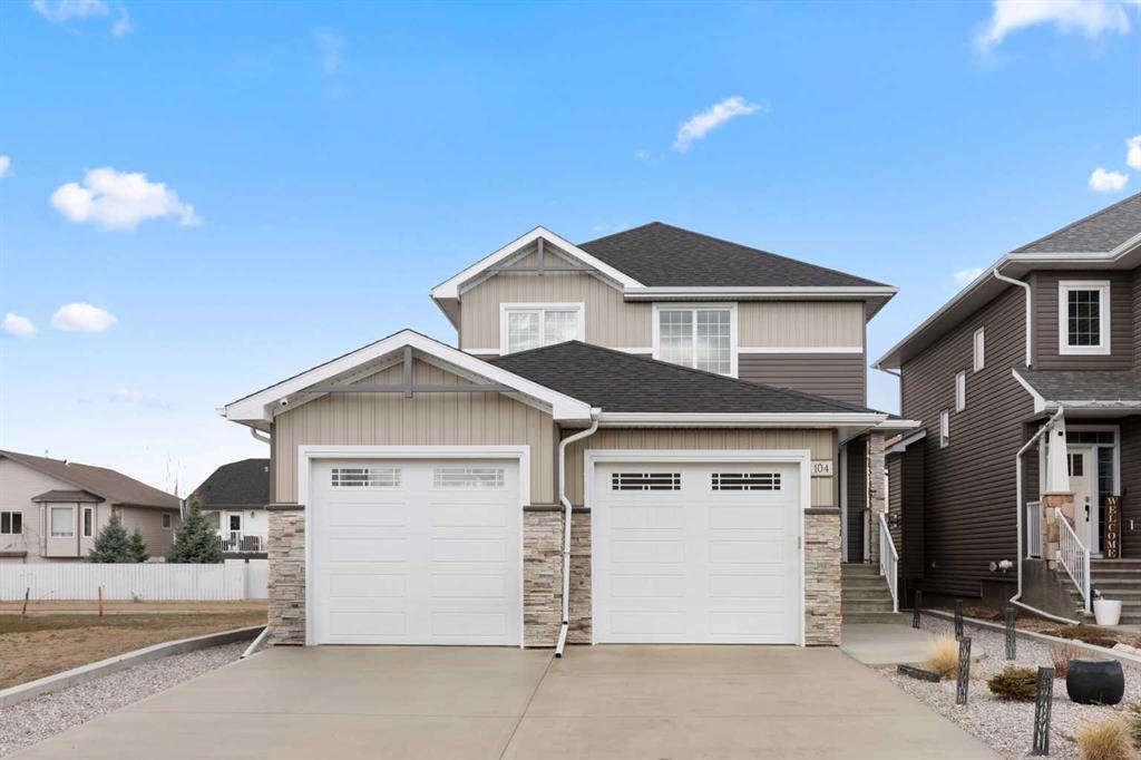 Welcome to this beautifully maintained and thoughtfully designed 2-storey home, nestled on a peaceful street in the desirable Hamptons community. Boasting 5 bedrooms and 3.5 bathrooms, this fully developed property showcases exceptional care and pride of ownership from top to bottom. From the moment you arrive, the professionally landscaped yard and striking curb appeal invite you in. Step through the front door into a spacious and welcoming entryway that flows effortlessly into an open-concept main floor. The living room is a warm, inviting space featuring a stylish custom feature wall and a cozy gas fireplace — perfect for relaxing or entertaining. The heart of the home is the stunning custom kitchen, highlighted by two-tone cabinetry, elegant quartz countertops, and a large central island with seating. A functional layout and walk-in corner pantry make this kitchen as practical as it is beautiful. The adjoining dining area is generous in size and leads out to a covered upper deck overlooking the tastefully finished backyard — ideal for year-round enjoyment. Upstairs, you'll find two well-sized bedrooms, a modern 4-piece bath, and a spacious primary suite designed with comfort in mind. The primary ensuite is a retreat of its own, featuring double vanities, a luxurious soaker tub, a separate walk-in shower, and a large walk-in closet. The fully finished basement adds incredible value with two additional bedrooms (one currently set up as a home gym), a large family room, and a sleek wet bar/snack station — all enhanced by another custom feature wall and fireplace that add character and warmth to the space. The heated double attached garage is bright and fully finished, providing both function and flair. The backyard is fully fenced with durable vinyl and landscaped with the same meticulous attention to detail found throughout the home. Flooded with natural light and lovingly maintained, this home is move-in ready and a true standout in its class. Don’t miss your opportunity to own a property where quality meets comfort — this one is a must-see!