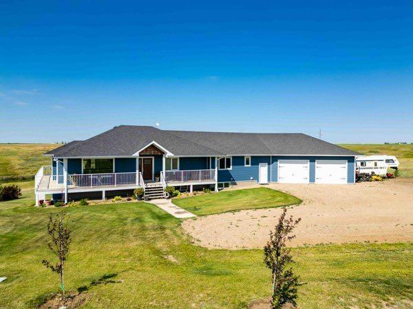 Just minutes west of the city, this beautiful one-owner Brost-built walk-out bungalow is nestled on 7.44 acres of beautifully developed land—offering the perfect blend of country charm and everyday convenience. Step inside to a bright, open layout designed with family in mind—featuring oversized windows that flood the home with natural light, a spacious drop zone, 5 (3+2) bedrooms, and a flexible bonus space. The spacious walk-out basement is nearly finished, giving you a head start on customizing even more space to suit your needs. Outside, the property is a dream for hobby farmers, horse lovers, or families craving room to roam. It’s fully fenced and cross-fenced, complete with animal shelters, feeders, a riding arena, and a fantastic water setup including Westside Water and SMRID. The yard is beautifully landscaped with established perennials, garden beds, and wide open spaces for kids, pets, or peaceful evenings under the prairie sky. The oversized heated garage offers up excellent parking, workspace and storage! With wrap-around decks, gorgeous views in every direction, and room for your entire crew—this is the kind of acreage that feels like home from the moment you arrive.