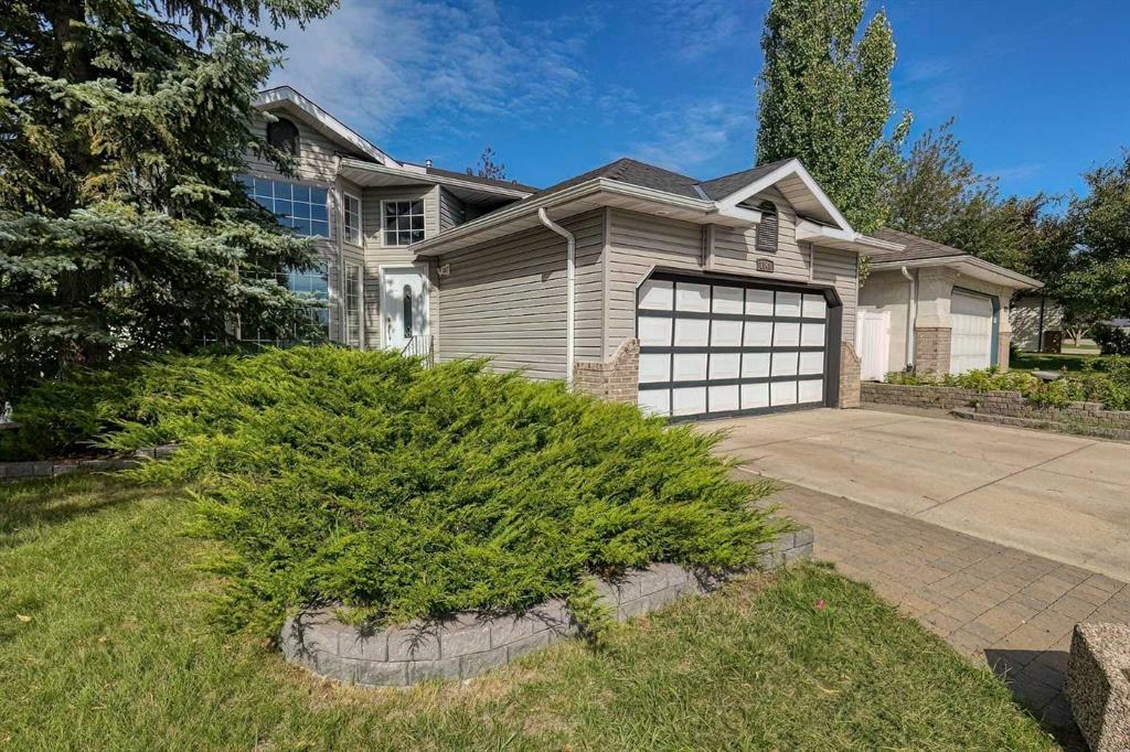 Excellent Airdrie Location and great curb appeal in this former showhome with FOUR Beds / 3 Full Baths close to schools, parks, pool, Genesis Place and shopping in a FAMILY FRIENDLY AIRDRIE Neighbourhood. Fully Finished WALKOUT to a fenced yard with 6 ft vinyl fencing, a covered deck on the ground level, firepit, garden shed and mature trees and landscaping. The asphalt shingle roof was replaced in 2014 and the windows feature a higher R-factor. A spacious foyer welcomes you home to a bright living room on the ground floor featuring a two storey vaulted ceiling. A few steps up brings you to the main level with dining room overlooking the living area & adjoining the kitchen with plenty of storage space, additional lighting provided by a skylight, plus a breakfast bar and room for a small eating area if desired. A deck for entertaining and barbecuing off the kitchen overlooks the fenced backyard. Primary suite with 4pc ensuite, & TWO more bedrooms share a 4pc bathroom completes the main level. A stairway at the entry leads down to the WALKOUT level into a huge open recreation room or family room with gas fireplace. Finished space also includes an additional bedroom, a 150 Sq FT Flex area with a laundry area, a 3pc bath plus the Utility room. An insulated crawl space below the living room provides additional storage space. Solar panels were installed in October and are now operational. This will provide a projected substantial saving on utilities to the home owner going forward. This is a great family home in a mature and accessible neighbourhood so don't wait too long to check it out!!