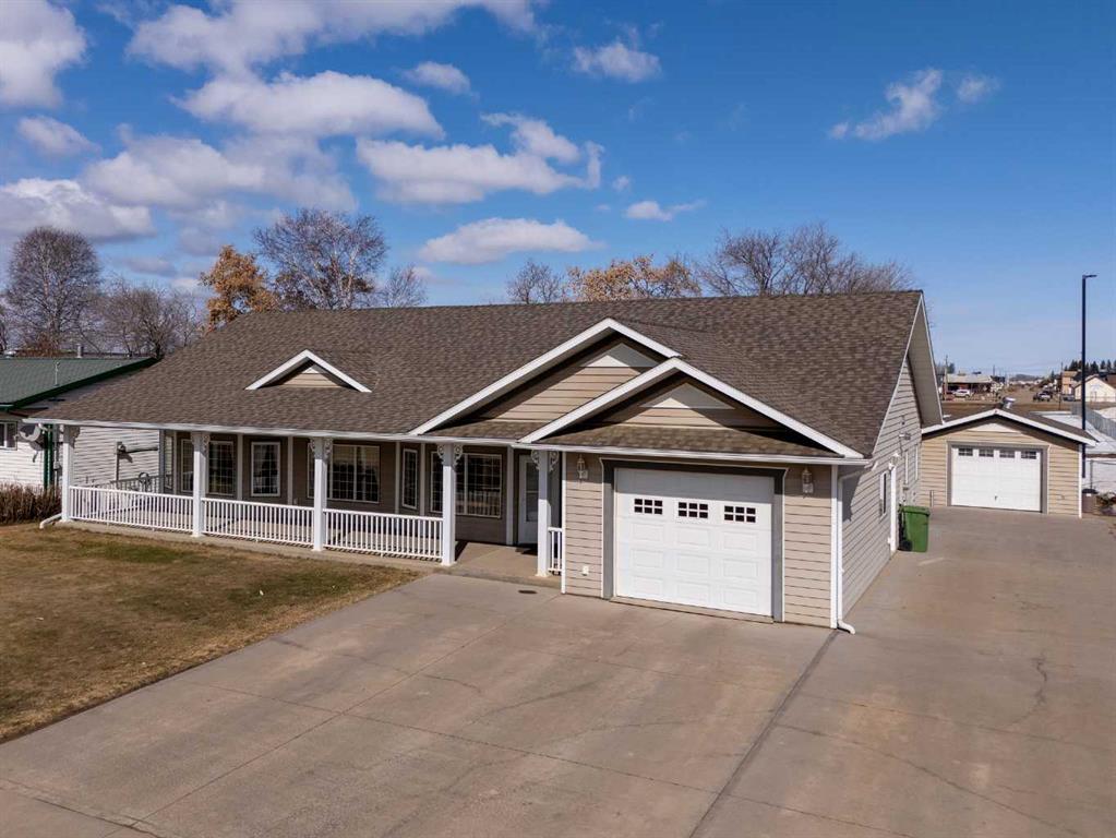 This beautiful home features a gas fireplace for cozy evenings and a cement driveway for low-maintenance durability. Designed with comfort and convenience in mind, it boasts excellent accessibility, including a spacious entrance and open layout that makes moving throughout the home effortless. You'll love the crown moulding, large dining area perfect for gatherings, and a kitchen with plenty of cupboard space. Large windows fill the space with natural light, while the expansive front porch offers a welcoming spot to relax and enjoy a cup of coffee and good conversation.