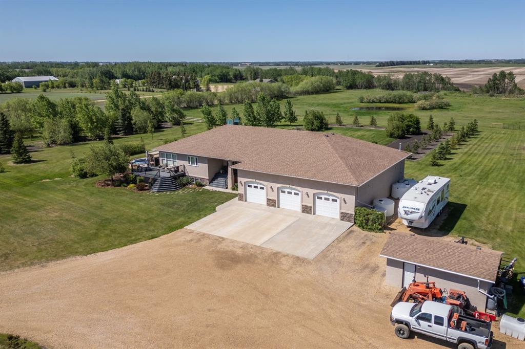 This impeccably designed 1985 sq. ft. raised bungalow sits on a breathtaking 14.7-acre parcel, delivering an ideal blend of peaceful prairie serenity with family fun & quick access to the city. This custom-built, executive country estate is perfectly positioned just 3 miles from the city of Camrose.