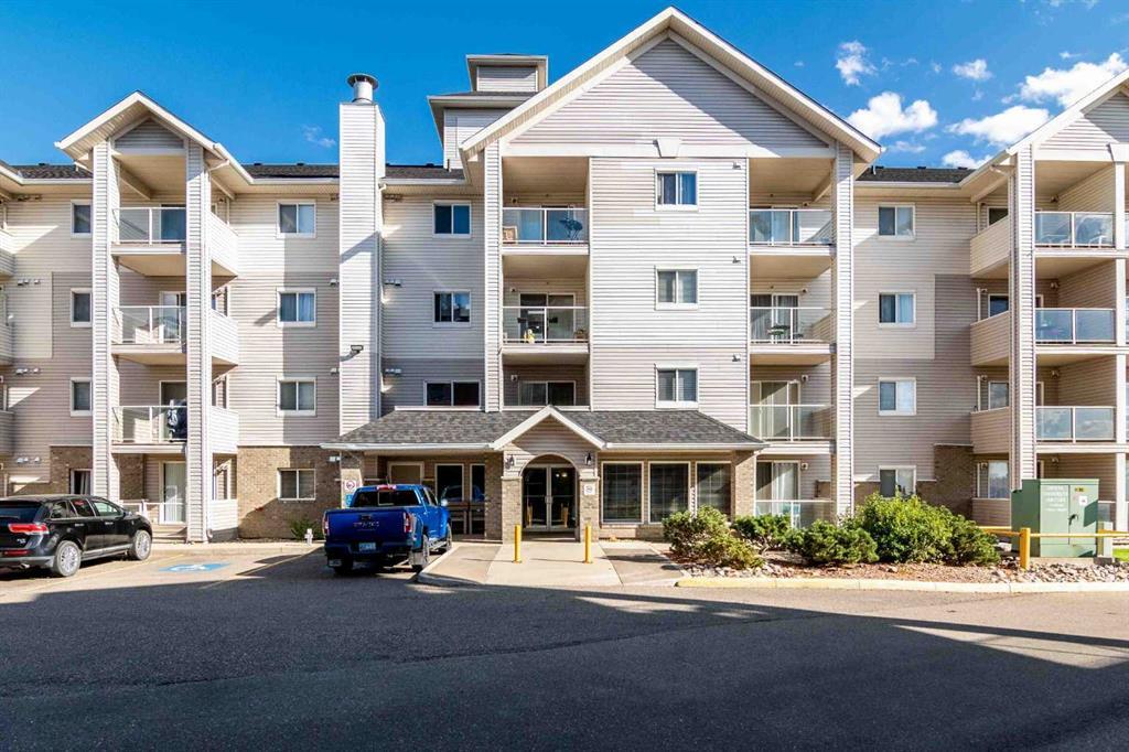 River view one bedroom plus living room located in Axxess condos. This main floor unit has full river valley views from southern exposure. Primary bedroom is a good sized and separate living room/den plus an eat in kitchen area with sliding doors to the covered deck. The four piece bathroom also has the laundry area. Well kept building, this unit comes with an assigned parking stall with plug in outside. This unit is being sold "as is, where is" on date of possession.