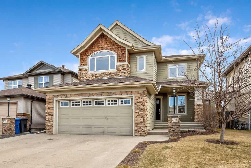 Welcome to 202 Cimarron Drive! Over 2300sqft 2 storey with 3 bedrooms, 2.5 bathrooms, bonus room, den/office/formal dining room, partially finished basement and double attached garage. When you enter this home you will be amazed at the size and grandeur. The main level with a vaulted and large front entry, oversized den/office, main level laundry, a kitchen with maple cabinetry, stainless steel appliances, kitchen island and eating bar, a massive living room with natural gas fireplace and a great dining space. There is also a 2 piece bathroom. The upper level is home to the massive and luxurious primary suite, with walk in closet and a 5 piece en suite bathroom, with large soaker tub and a oversized vanity with makeup counter. There is also 2 more bedrooms, a 4 piece bathroom and a massive bonus room, perfect for family hang out time. The basement is partially finished with framing, electrical and drywall complete. Its ready for a 4th bedroom, 4th bathroom, large rec and games room and storage. Upgrades through out this property include; Hardy board siding, smart board trim, central air conditioning, underground irrigation, dog run, hot water on demand in the kitchen, high ceilings, vaulted ceilings, exposed aggregate driveway and newer hot water tank, water softener, microwave, washer, dryer, and luxury vinyl plank flooring. The yard is landscaped and has a nice east facing back deck(sun on a cool morning and shade in the hot afternoon) prefect for hanging out with family and friends. This property is conveniently located close to walking/biking trails, shopping, restaurants, schools, playgrounds and the river. This home is magazine and move in ready!! Book that showing!!