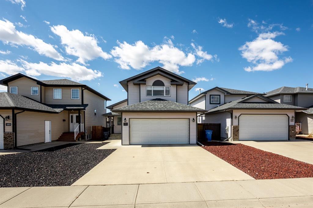 This lovely modified walkout bi-level offers a unique and functional floor plan in an unbeatable location—just steps from parks, walking paths, and schools. Nestled on a quiet street and backing onto a peaceful green space, this inviting home offers comfort, privacy, and a connection to nature—perfect for any season of life. Inside, you’ll be welcomed by a spacious front entryway that sets the tone for the thoughtfully designed interior. The bright and open kitchen features a central island and direct access to the upper deck—a perfect spot to enjoy your morning coffee or wind down in the evening. The main level also includes a 4 pc bathroom and 2 comfortable bedrooms, including the primary suite with double closets. Upstairs, the large vaulted family room above the garage adds even more living space. Up a few steps there is also a bonus space, offering a flexible area that could easily serve as a home office, gym, or playroom—whatever suits your lifestyle. Downstairs, the fully developed walkout basement includes a third bedroom, a cozy family room, a second full bathroom, laundry, and generous storage. The walkout patio is a peaceful place to entertain or simply watch the kids play in the backyard. The home also includes an insulated and drywalled double attached garage. Low-maintenance landscaping enhances both the front and back yards, with rock detailing in the front and a handy storage shed in the back. Various recent updates add a fresh touch while maintaining the home's timeless charm. This is a warm, welcoming property in a wonderful location—ready to fit your family's needs and lifestyle!