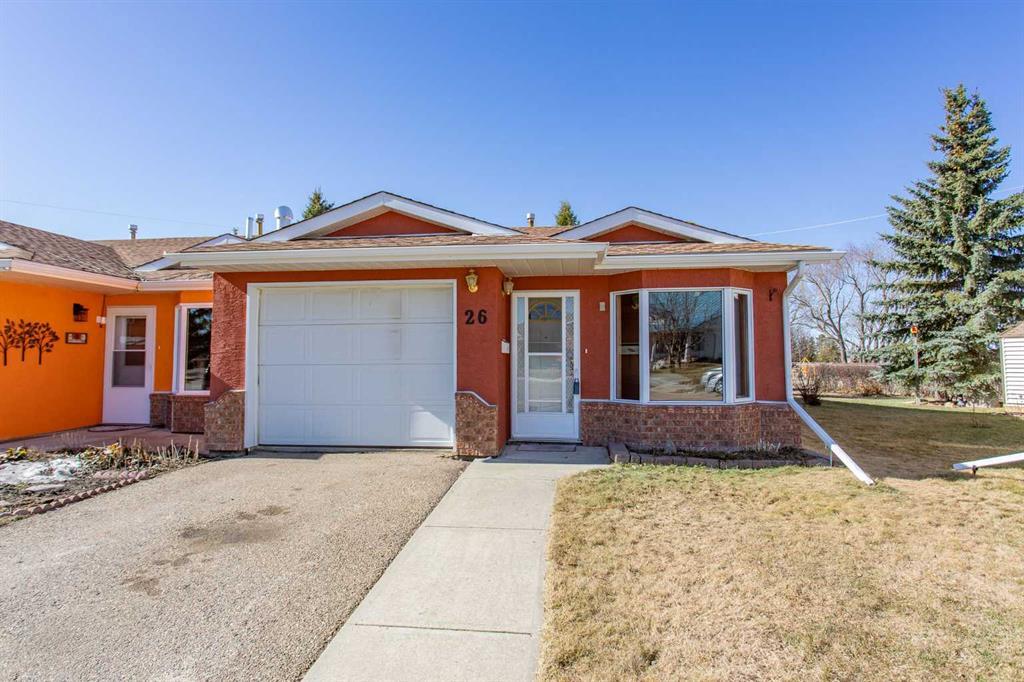 Great location for this one level townhouse. Located on a quiet close in the friendly community of Bentley. Living room off front entrance offers a Murphy bed for overnight guests. Kitchen has lots of oak cabinets and is open to dining & 2nd living room. Patio door to sunroom or workshop - it has been used for both (most recently a workshop). Good size bedroom with large 4pce bath across the hall. Heated single garage to keep your vehicle safe from the elements. There is a crawl space that houses the furnace & hot water tank. Good sized back yard area with room for a garden or outdoor seating area. This is s perfect property for seniors.