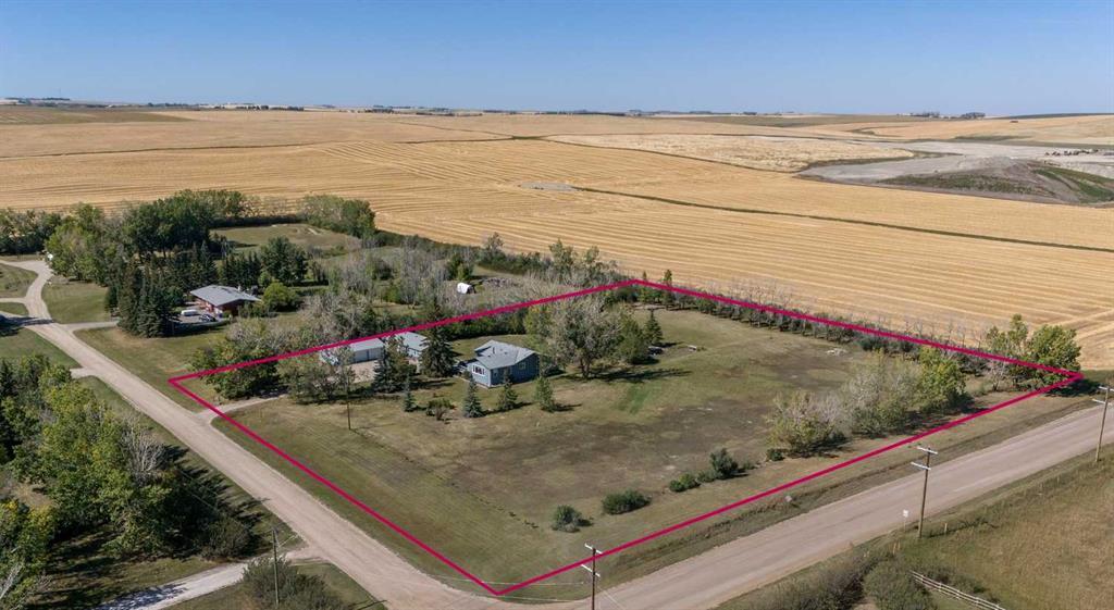 Welcome to this one-of-a-kind 4-acre property located in the peaceful, country residential community of Dry Creek Bay—a quiet enclave tucked inside Airdrie’s city limits. Proudly offered by the original owners who have lovingly cared for this home for nearly 50 years, this property offers the perfect balance of rural charm and urban convenience. This spacious and fully developed bungalow offers over 3,100 square feet of living space, with 1,656 sq ft on the main floor and 1,524 sq ft in the finished basement. The main level features a thoughtfully designed layout, perfect for both everyday family life and entertaining. The cozy living room boasts a stunning gas fireplace with a stone surround, wood mantle, and hearth—ideal for curling up on cool evenings. The kitchen is both functional and welcoming, complete with solid wood cabinetry, a Silgranit sink, a generous walk-in pantry, and ample counter space that makes cooking for a crowd a breeze. Gather around the table in the spacious eat-in kitchen, or spread out into the additional family room/dining room for added flexibility. With 5 bedrooms and 3 full bathrooms, there’s plenty of room for everyone. The primary suite offers a peaceful retreat with an oversized window, double closets, and a private ensuite featuring a tiled walk-in shower and generous vanity. Two additional bedrooms and a full 4-piece main bathroom complete the main floor. Downstairs, the sunshine basement brings in natural light and features a large recreation room, a cozy family room with built-in shelving, two more large bedrooms, and another full bathroom—ideal for guests, teenagers, or multi-generational living. Car lovers and hobbyists will appreciate the oversized 3-car garage, offering abundant space for vehicles, tools, and weekend projects. Need even more space? You’ll love the 48’ x 24’ detached office/flex building, perfect for running a home-based business, setting up a studio, or creating the ultimate workshop—just steps from your front door. The outdoor space truly shines. Step onto two sunny decks, relax around the fire pit, enjoy a well-tended garden with pond and shed, and take in the beauty of the mature trees and landscaped yard that make this property feel like a private retreat—just minutes from everything Airdrie has to offer. Additional upgrades include a brand-new Hardie Board exterior, new shingles on both the house and office, and vinyl windows throughout much of the home. Plus, the bus stop for Airdrie’s Tri-School site is conveniently located right at the corner of the property—making this location as practical as it is peaceful. If you’ve been dreaming of quiet acreage life with the convenience of city living, this is your opportunity. Homes like this are rarely offered—book your private showing today and experience all that Dry Creek Bay has to offer!