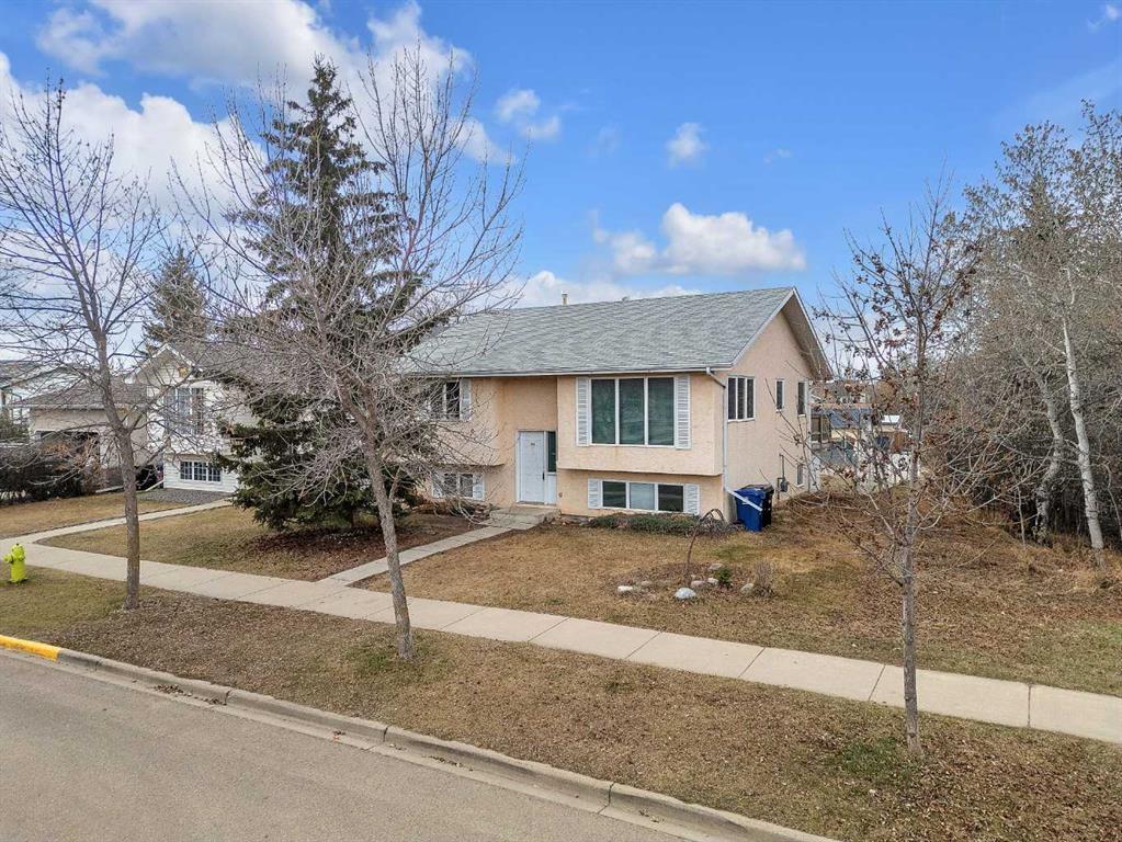 This fully finished bi-level in Blackfalds is packed with potential and perfectly positioned for a smart investment or a first-time buyer looking to build equity. Backing onto a peaceful park reserve with no neighbours to the north, you'll enjoy views of mature trees and a scenic pond right from your backyard. With 1,030 sq ft on the main level and a finished basement, this home offers a bright, open-concept layout featuring vaulted ceilings and a west-facing kitchen and dinette that opens to a spacious 12x18 deck with enclosed storage below—ideal for entertaining or relaxing on warm summer nights. Hardwood floors run through the main level, and the kitchen includes plenty of counter space, European-style cabinetry, and loads of natural light. There are 3 bedrooms and 2 baths, with the option to create a 4th bedroom downstairs by simply adding a wall in the games room—without sacrificing family room space. The lower level’s L-shaped layout offers tons of flexibility for a rec area or home office. Outside, you'll find a private fenced yard with plenty of room for kids, pets, or future garage development, plus the back alley is set up for easy RV, trailer, or boat parking. While the home will require a bit of investment and some elbow grease to shine it up to its former self—it's a fantastic opportunity to own a rare lot and build equity in a family-friendly neighbourhood close to trails, parks, and all amenities.