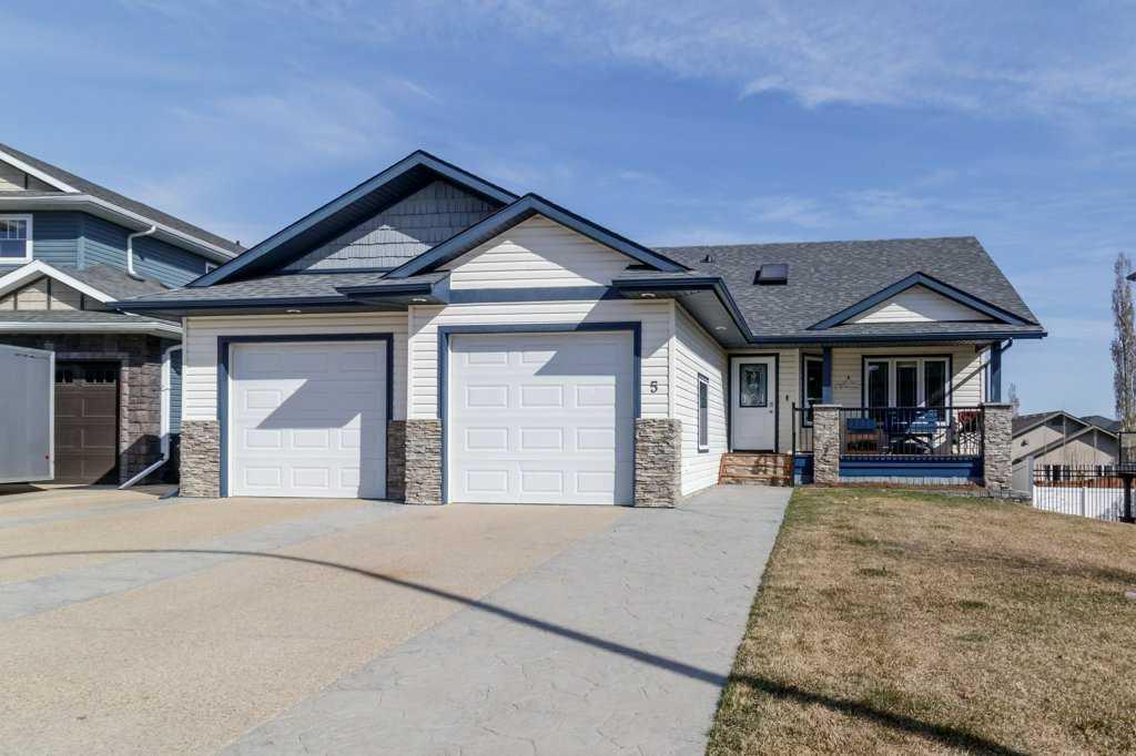 ***BEAUTIFUL 1480sqft WALKOUT BUNGALOW! SUPER CLEAN, 5 BEDROOM/3 BATHROOM HOME WITH OVERSIZED GARAGE, EXTRA LARGE CONCRETE PARKING PAD, IN A QUIET CLOSE*** This home has pride of ownership. The spacious tiled entry way is very appealing, revealing the vaulted ceiling design with tons of natural light and 2 skylights, gas fireplace, and rich hardwood flooring. The kitchen features tons of custom hickory cabinets with soft close doors, quartz countertops, eating bar in the island, tiled backsplash, all stainless steel appliances, and corner pantry....overlooking the large dining area. The large master bedroom has a full ensuite bathroom with shower, his and her's sinks, and walk in closet. Two more bedrooms, full 4 piece bathroom, and main floor laundry complete the main level, making it perfect for the growing family. Head downstairs and enjoy the in-floor heated basement featuring the large family room with wet bar, theatre room with raised seating, full bathroom, 2 more large bedrooms, and oversized utility and storage room. The oversized, fully finished, attached garage is perfect for all your vehicles and toys. Head out back through the walkout basement and enjoy the large deck and landscaped yard with parking for your trailer, boat or RV. Additional parking in front with the huge concrete pad. Air conditioned throughout, new engineered shingles (2024), hot water heater (2023) and new furnace. Close to schools, parks, trail system, and both highways. Perfect location that is close to schools, trails, Sylvan Lake Gulls Stadium, excellent access to both highways, dog park, and the list goes on.