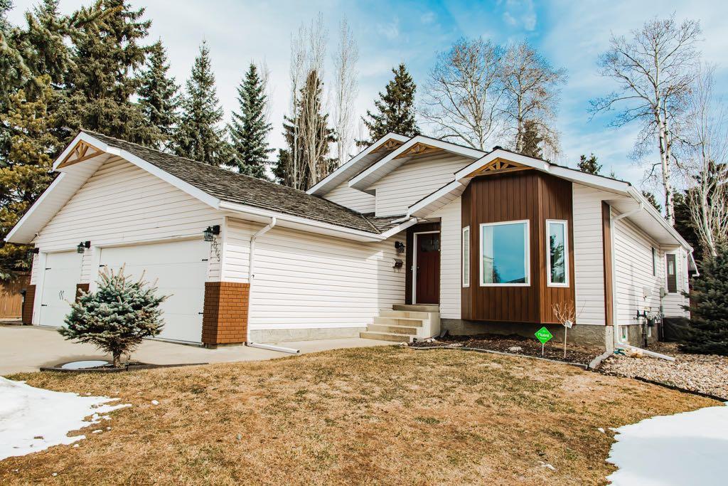 Incredible 4 level split nestled on mature, treed lot in Wedgewood! Enjoy the convenience of being minutes to town while benefiting from county taxes. This property is ideally located close to walking trails and the Country Club Golf Course, with golf cart access available. There's RV parking beside the garage with a plug-in, and a spacious triple heated garage for all your needs. Inside, you’ll find fresh paint and an updated kitchen with stunning quartz countertops. Stay comfortable year-round with air conditioning. This spacious floor-plan provides two large living areas—one with a gas fireplace, and the other featuring a stone entertainment wall. Upstairs has 3 bedrooms, including a primary suite with full ensuite, plus a main bathroom with a jetted tub and large vanity, renovated with new tile, paint and light fixtures. The gorgeous chefs kitchen boasts white cabinetry, a large island, and a bayed dining area that opens onto the covered deck. The third level offers a family room, flex area (great for toys or an office), third bathroom, and laundry. On the fourth level, you'll find an additional bedroom and a storage/games or office area. The treed, private lot features a covered deck, hot tub, and fire pit area—perfect for entertaining!
