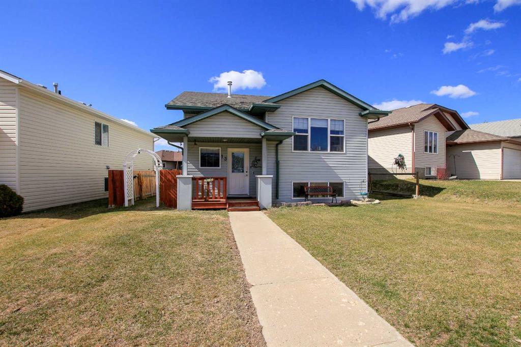 2 BEDROOM, 2 BATHROOM BI-LEVEL ~ CLOSE TO SCHOOLS, SHOPPING, PARKS & PLAYGROUNDS ~ Covered front entry welcomes you and leads to a large sun filled foyer ~ Open concept main floor is complemented by soaring vaulted ceilings ~ The living room features a large picture window overlooking the front yard and allowing for plenty of natural light ~ Easily host a large gathering in the spacious dining room ~ The kitchen has a functional layout and offers plenty of warm stained cabinets, ample counter space including a raised eating bar, full tile backsplash, window above the sink, wall pantry and garden door access to the deck ~ The primary bedroom can easily accommodate a king size bed plus multiple pieces of furniture and has ample closet space ~ Main bathroom has an oversized vanity and a walk in bath tub ~ Second main floor bedroom is also a generous size ~ The basement offers large above grade windows, a completed 3 piece bathroom, laundry in it's own room with a sink and has some framing for a family room and two bedrooms ~ The backyard is partially fenced, has two sheds (10' x 10' & 4' x 16'), a gazebo (10' x 10') and offers back alley access ~ Located steps to multiple parks, playgrounds, Abbey Centre, multiplex, schools, shopping and all other amenities.