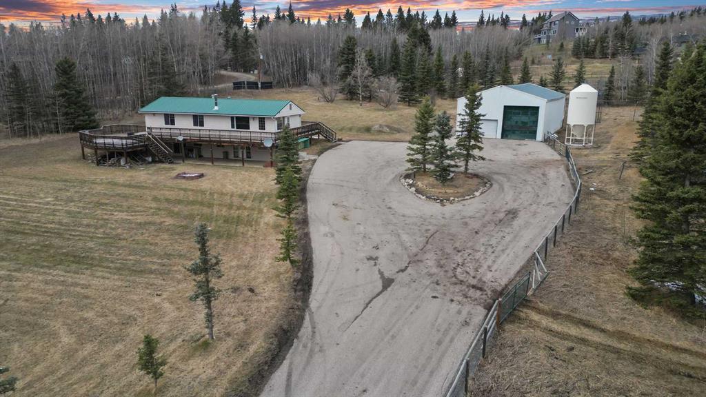 Welcome to this well maintained walk-out bungalow nestled in the highly sought-after Millarville area. Set on a picturesque 6.82-acre parcel, this property offers stunning valley views, mature trees, a paved driveway, and an impressive almost 2000 sq ft shop.