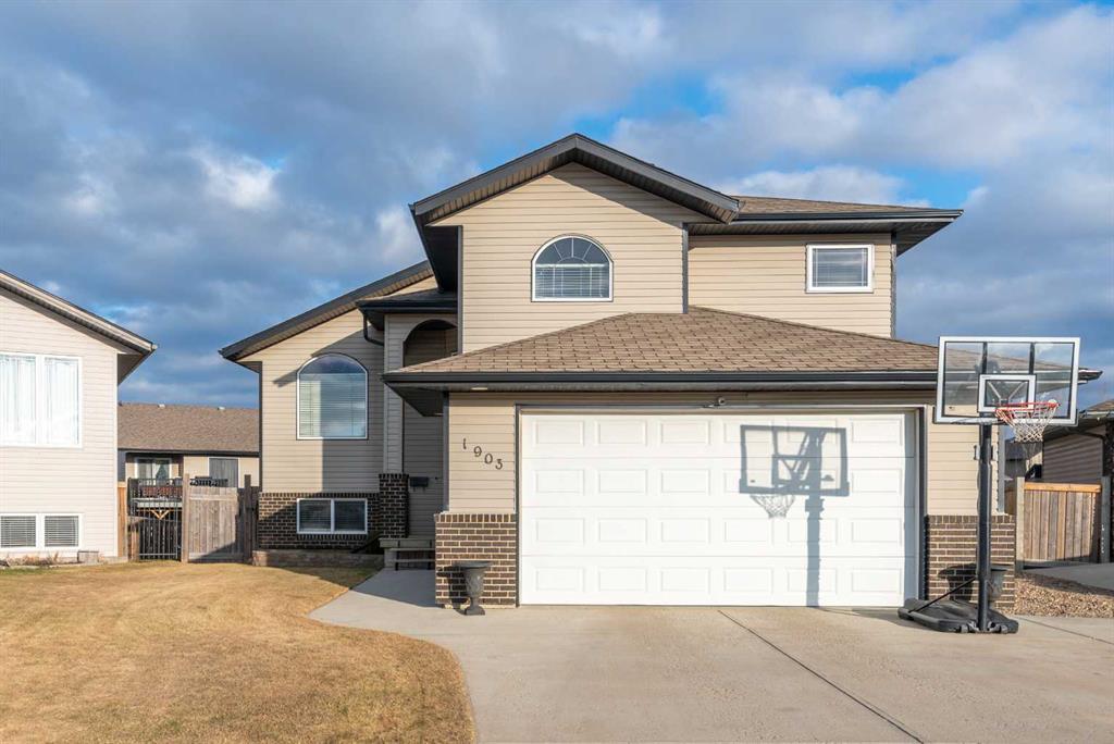 Welcome Home! Here you find a beautiful, spacious and carefully maintained modified bi-level, tucked into the corner of a quiet College Park cul-de-sac. With 1543 square feet this fully finished property is a step above the norm, featuring a walk out basement and a view of the lake from the top deck! This home is clean and bright throughout with a functional layout, featuring main floor laundry, a huge entry way, and five generously sized bedrooms. The primary has a vaulted ceiling, walk in closet and both a corner Jacuzzi tub and separate shower in the spa like ensuite. The kitchen is functional and welcoming, lots of room for multiple people to work comfortably in this area with plenty of user friendly counter space. There is an abundance of cabinetry, updated quartz countertops, handy island, modern white cabinet doors a pantry and broom closet for easy access to storage. Each of the stainless steel kitchen appliances are new within the past five years and are included in the sale. Scratch free laminate flooring has been installed in the main - great for saving on wear and tear from kids or pets! A modern lighting package is featured on the main where there is room to entertain and feed a crowd as the expansive space could work with any size of dining table. Another BONUS is that a brand new furnace was just installed! Awesome family hang out spaces are found here with the large vaulted living area or the tv/ theatre space, playroom, games area, office or workout room downstairs - there is plenty of flex space for what ever YOUR needs are in your new home! With the walk out basement the windows on thi level are large and provide for great light downstairs as well - does not feel basement like at all! The pie shaped lot is supersized, fully fenced and landscaped with a two tier deck and storage shed. In addition to the 22x26 insulated and heated garage with a brand new garage door opener, you will also appreciate the opportunity for the additional RV parking. This is a lovely, well-cared for family home in a coveted neighbourhood. Make your move!