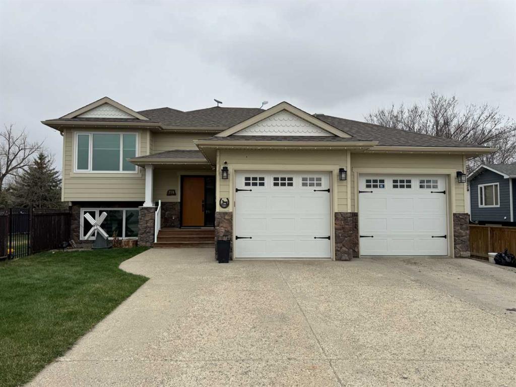 This stunning 2008 custom built split-level home offers seven bedrooms and three bathrooms, making it the perfect fit for a growing or multigenerational family. Located on nearly a quarter acre in a peaceful, family friendly neighbourhood close to the school, this home is loaded with features and upgrades. Inside, you’ll find warm knotty alder floors, trim, and cabinetry, with vaulted ceilings upstairs and 9 foot ceilings in the fully finished basement. The spacious layout provides both functionality and comfort, with large basement windows letting in loads of natural light. Stay comfortable year-round with a high-efficiency Lennox furnace and central A/C system installed in August 2024. All new windows are triple-pane vinyl with argon gas, complete with zebra blinds and quality window coverings throughout. The kitchen and laundry appliances are all LG (within the last 5 years), with a Bosch dishwasher and a plumbed fridge downstairs—all included! The basement features durable tile and laminate flooring. LED lighting runs throughout the home, including LED motion sensor lights and stylish stone-type accent lights on the front exterior. Upstairs, both toilets were replaced in 2022, and the primary bedroom and kid's room includes mounted closet organizers. The home also comes equipped with a full security system. You will love the attached double car garage complete with a mezzanine for extra storage! Step outside to enjoy a beautifully landscaped yard with lilac bushes in front, two apple trees, and a cherry tree in the backyard. The roof is in excellent condition with triple-nailed asphalt shingles built to withstand high winds. This spacious and thoughtfully designed home is a rare find, a true must see for any family looking for space, comfort, and quality. Call your favourite REALTOR® today to book a showing!