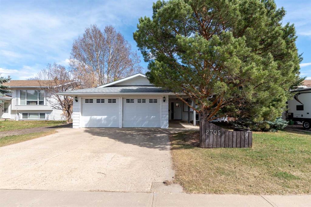 Situated just steps from Messum Lake and only two blocks from schools, this updated home is ready for you to move in and enjoy. Featuring a functional layout, the spacious kitchen offers ample counter and cabinet space — perfect for any family. The main floor features two large bedrooms, including a primary suite with a 3-piece ensuite. Downstairs, the bright basement benefits from large windows providing abundant natural light, two additional bedrooms, another full bathroom, and a bonus area. Plumbing is already roughed in if you envision adding a kitchenette or wet bar! Plus, enjoy the comfort of in-floor heating powered by a new boiler installed in 2022, alongside hot water on demand. Start your mornings basking in the sun on the deck, surrounded by mature trees that provide excellent privacy. The backyard is landscaped, tidy, and features a shed, and a major bonus, a relaxing hot tub. RV parking is also available for added convenience. The oversized 24' x 21' double garage is a standout feature, complete with workbenches and storage. This home truly has location, updates, space, and comfort! Check out the 3D virtual tour!