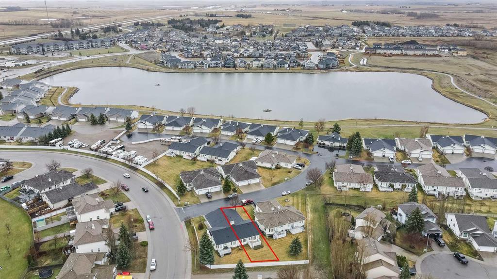 Conveniently located on Westmount Drive, this charming bungalow is well situated in a tranquil seniors complex near a beautiful lake with access to a private clubhouse. In Strathmore Lakes Bay you do not have to sacrifice size or space, these half duplexes offer an easier living solution to those who choose to call it home. Tucked near the entrance, this home offers nearly 2000 sq. ft. of usable living space. It features tall vaulted ceilings and there’s an abundance of natural light. The home is very original to the 90's-era and needs a modern touch added; it's currently sitting as a blank slate that’s been freshly painted in a neutral tone. If you’re someone who enjoys taking on a project, then this is the right fit for you. There’s a primary bedroom plus a den/office space along with 2 full bathrooms, all on the main floor. Another added convenience is the laundry room located just off the garage entrance, meaning day-to-day living can be done on this single floor. A few accessible features are already included such as a chairlift on the staircase to the basement, and a standing shower in the primary ensuite. The kitchen cabinets are traditional in fashion and made of oak, the bay window at the front is the perfect little breakfast nook. In between, the dining room is tucked with a chandelier fixture hanging low. The living room is broad, complete with a gas fireplace and has direct access onto the deck facing a backyard that is green, open and private. Strathmore Lakes Bay offers partial fencing, ensuring the community is enclosed for residents. The yards around are free flowing which create a cohesive look in the area. Back inside the home you have a fully finished basement with a massive recreation room, there's an additional bedroom downstairs with its own 4-piece ensuite for when guests visit. The utility room features a deep storage space which can be converted if additional square footage is needed. Parking is easy, with a double attached garage plus 2 parking spaces on the driveway - That makes a total of 4 designated parking spaces! Notable additions include a brand new asphalt shingle roof that was completed in 2025, the high efficiency furnace was updated in 2021 and a central air conditioner was installed in 2022. The home offers comfort, and the amenities associated with the condo allow for low maintenance living with seasonal upkeep included in the fees. Strathmore is a town surrounded by greenery that commercially is growing to suit their population's needs, Trans-Canada Hwy is 1 km away and has everything you need from gas stations to dining options to grocery stores - Don’t forget to check out the virtual iGuide before booking your showing. If you're looking to downsize into an age appropriate community, then we have the one for you!