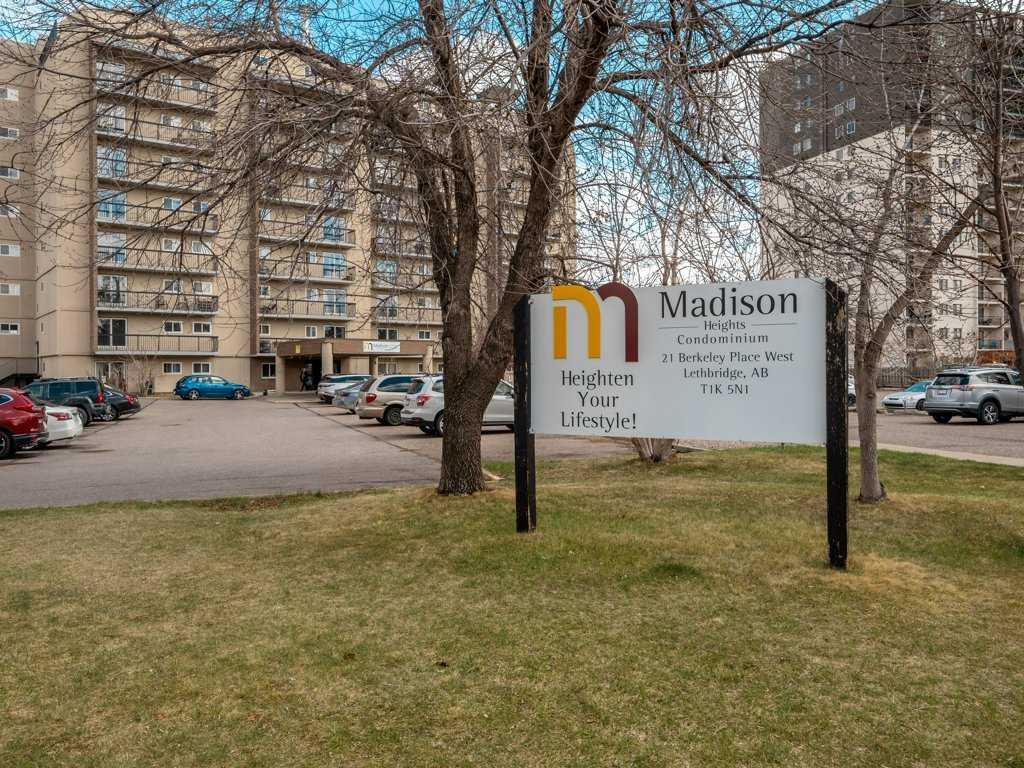 Welcome to Madison Heights—an excellent opportunity for students, first-time buyers, or savvy investors seeking a well-located two-bedroom, one-bathroom condo directly across from the University of Lethbridge. This bright and airy corner unit benefits from an east-facing exposure, flooding the space with natural light. Inside, you'll find updated vinyl plank flooring, fresh paint, and a modernized bathroom. Located on the second floor, the private balcony showcases scenic views of the university and city skyline. Madison Heights is a professionally managed, well-maintained building featuring a resident caretaker, two elevators, assigned parking, and coin-operated laundry facilities. With its unbeatable proximity to the university, public transit at the doorstep, and all essential amenities nearby, this unit offers strong rental potential and long-term value for investors—while also being an excellent place to call home for buyers seeking comfort and convenience. This unit is TRULY A MUST SEE!!