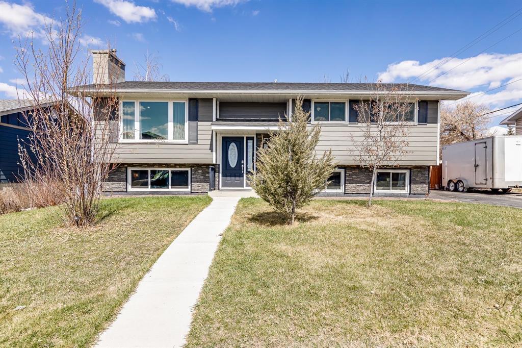 Welcome to this Gorgeous Fully Renovated Home on a DOUBLE LOT in the Heart of Airdrie. This 5 Bedroom Home has undergone an amazing transformation from top to bottom. When you arrive you will be impressed with how large the lot is and the side parking pad perfect for Extra Parking including RV parking. As soon as you open the door to this Beautiful Home, you will immediately notice the Cabinetry in the Foyer, and be impressed by the view of the Kitchen. The Main Level has a Spectacular Kitchen with tons of WHITE CABINETRY, Large Island, Built in Pantry, Granite Countertops, Lighting, and Stainless Steel Appliances. The Living Room has a Large South Facing Window and a Wood Burning Fireplace. The Primary Bedroom fits a King and has a Renovated 2 Pc Bath. 2 Additional Bedrooms and a Newly Renovated 4 Pc Bathroom complete the Main Level. The Lower Level has a Fantastic Family Room with a Gas Burning Fireplace, Wet Bar with tons of Cabinets, and a Built in Wall Unit. The Lower Level also has Bedroom 3 and 4 (which could easily be made into 1 huge bedroom with the removal of a temporary wall), a Renovated Bathroom, Laundry Room and a Flex Room perfect for an Office or Gym. This Incredible Home also has Air Conditioning, a New Upgraded Electrical Panel (2020), Newer Furnace (approx 2011), New Hot Water Tank (2024), all the Windows have been upgraded to vinyl, and the Home has Hardie Board Siding. The Exterior of the Home features a Large 2 Tiered Deck with the Upper Portion Covered, a Massive Yard, 2 New Oversized Sheds, and the Oversized 25'4" x 23'2" Garage. There is lots of space for the kids to play, add a Garden or have more RV Parking. This Home is walking distance to an Elementary, Middle, and High School, plus grocery, shopping, dining and very easy access to QE2. Ideal possession is at the end of June, beginning of July. Ensure to watch the tour on MLS or Realtor.ca