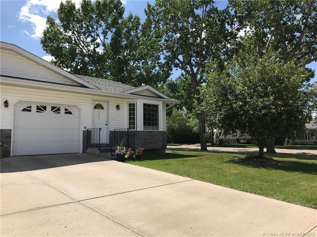 top notch location Townhouse is perfect retirement spot 50+ housing. 3 bedroom, 2 baths, main floor laundry, a Sun Room with a Gas Fireplace. It has an addition developed as a sunroom that takes the living space and brightness to whole new level. Appliances replaced six years ago, some new window coverings, (several are the two way type blinds). This immaculately kept home is a real gem, very easy to show. Master Bedroom, Main Floor Bath, and Living Room have a Ceiling Lift for Handi-Cap person. Phantom screen on front door, also Fully Fenced and Landscaped. Check this home out, you won't be disappointed
