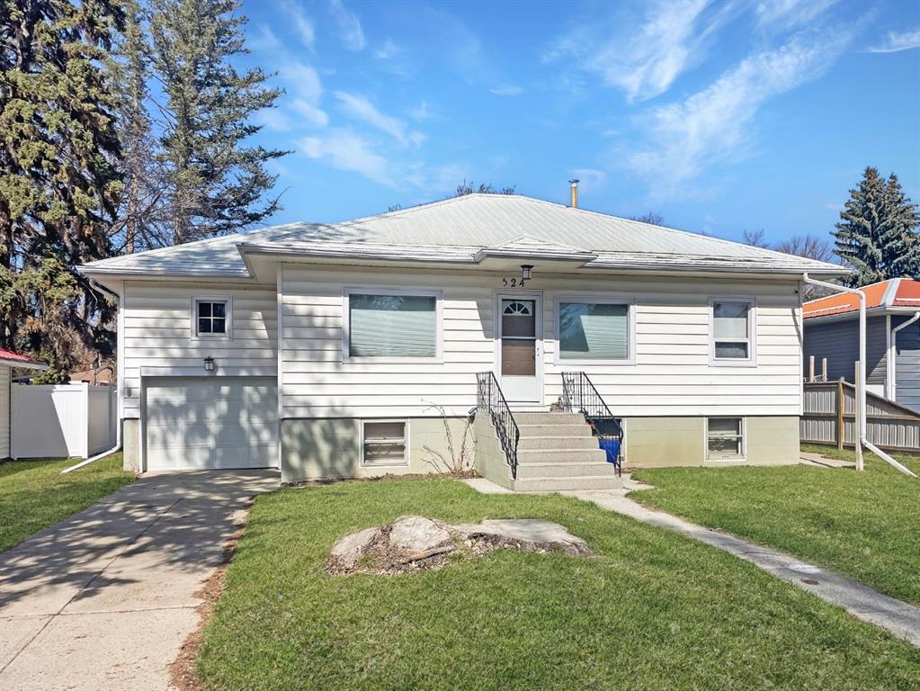 THE QUALITY OF ANOTHER TIME - Character homes in good condition seldom come to market & this is in one of the most sought after West End locations! Are you looking for a location worthy of your efforts to take your home to the next level? South facing with period "corner" windows framing pretty views & bathing each room in natural light. Solid 3/4" original hardwood throughout main & basement has aged, golden oil patina that could be refinished many times if you prefer a more contemporary look. Fir doors, wide baseboard & mouldings with brass hardware & glass knobs. Step into the main entry hall / dining room with 8 1/2 ft plaster ceilings & antique chandelier. Living room has gorgeous single panel French door & more corner windows. Kitchen is styled with original solid, curved corner cabinets all the way to the ceiling & the cutest spice cupboard. This home has great storage with custom built ins & wood shelving. King sized primary bdrm has excellent closet & storage cupboards, second bdrm with handy laundry hook ups if you please. Main bath gutted to studs, re-insulated, & rebuilt with quality Grohe plumbing fixtures, luxurious Neptune Jet & Air tub & custom glass block opening window. Separate side door basement entry & lots of large basement windows. Original apron front sink in basement kitchen is another wonderful vintage touch. 2 generously sized bdrms each with "bedsit" style ensuite sink to alleviate the bedtime bathroom lineups. Nat gas space heater is back-up heat when the power goes out & keeps everyone safe, warm & happy. Upgraded furnace & water heater.. Don't miss the amazing cottage roof attic space; this area would lend itself perfectly to a deluxe primary suite addition in the upper level from the living room. All renovations & upgrades have been done to preserve the design & character of this era of home. Solidly built with fir framing, upgraded insulation under modern vinyl siding. Partial vinyl fencing, u.g. sprinklers. Huge lot will accommodate additional garage. It's just steps to the outdoor skating rink, playground & tennis courts. Take the virtual tour & spring into action! You can be settled into your new home in time to plant flowers & a garden.