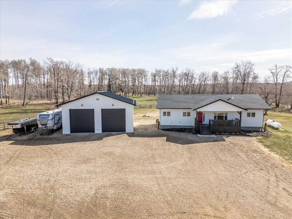 Beautiful 1675 sq/ft home built in 2016 and Fully Finished 40'x40' Shop situated on 5 Acres. The Main Floor of the home hosts an open concept Living room, Dining, and Kitchen with new Appliances within the last 2 years. The Primary Bedroom has its own 5 piece ensuite and walk-in closet. Two more bedrooms, a 4 piece bathroom, and the Laundry/Mudroom complete the main floor. The Basement has a large family room with a wet bar, Two more bedrooms, 4 piece bathroom, and a large Storage/Utility room all with in-floor heat. The home has Metal siding, Air Conditioning, a Gas Fireplace, and Decks off the front and back. The Gorgeous shop has in-floor heat, an epoxy coated floor, two power overhead doors, hot & cold water, and full RV hookup on its side with Power, Water, and Sewer. Already set up to bring your animals with nice rail fence and a hydrant for water. This Entire Property shows off its pride of ownership and must be appreciated in person!