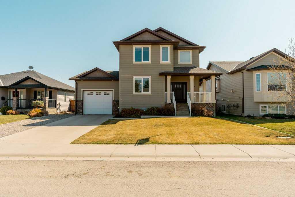 Welcome to this beautifully maintained 2-storey home in the highly regarded Town of Nobleford—offering some of the lowest property taxes in Alberta and just 20 minutes from Lethbridge. Sitting on a generous 60’ x 124’ lot, this home offers incredible space, comfort, and functionality for families of all sizes. Step inside to discover 9-foot ceilings, tons of natural light, and a bright open-concept layout. The kitchen features custom cabinetry, a walk-in pantry, and flows into a spacious living room complete with a cultured stone gas fireplace. With 5 bedrooms plus a main-floor office (easily used as a 6th bedroom), there's room for everyone. The fully developed basement includes in-floor heating and a large family/entertainment room. Outside, the immaculate backyard is a dream—featuring underground sprinklers, two mature apple trees, a kids’ play center, and beautifully maintained grass that feels like a golf course. Additional highlights include an extra-long garage, Hardie board siding, welcoming front porch, covered back deck, and RV parking. This is your chance to own a spacious, well-kept home in a quiet, family-friendly town that offers exceptional value and a great lifestyle. A must-see!