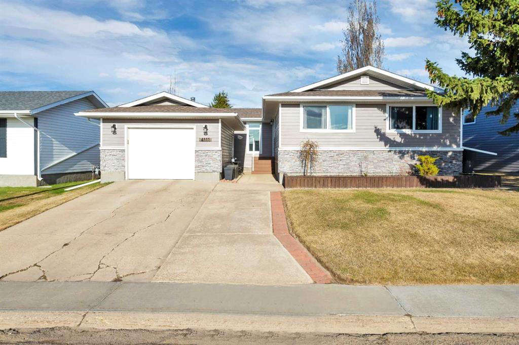 Welcome to this one-of-a-kind 5-bedroom home in the heart of Grandview, perfectly positioned across from an expansive green space and just minutes from the Stettler Rec Centre, West Stettler Park, the skate park, and sports fields — a dream location for active families. Inside, discover an intentionally updated interior that blends comfort and style. The fully remodeled kitchen is a standout feature, boasting white subway tile, granite countertops, classic checkerboard flooring, a corner pantry, and direct access to the back deck — ideal for indoor/outdoor entertaining. The adjacent dining area flows seamlessly into a bright, inviting living room, where a custom stone-clad feature and centered fireplace create the perfect gathering space. Natural light streams through custom Hunter Douglas blinds, accentuating the home’s modern aesthetic and calming color palette while highlighting the feature lighting throughout. 3 bedrooms make up the main level, with the primary having direct access to the beautifully tiled bathroom. This spa-like retreat features a soaker tub, glass-enclosed custom travertine tile shower, and a double wood floating vanity accented by white subway tile through-out. 2 of the five bedrooms, located on the lower level feature walk-in closets, a separate laundry room, additional fully updated bathroom and offers ample space for relaxing and play! Outside, the low-maintenance backyard is a true extension of the living space — immaculately landscaped with concrete edging, a dedicated play area with pea gravel, and a private breezeway joining together the single detached garage to the home. With every detail considered and upgrades throughout, this home is a rare find — stylish, spacious, and ready to welcome its next family.