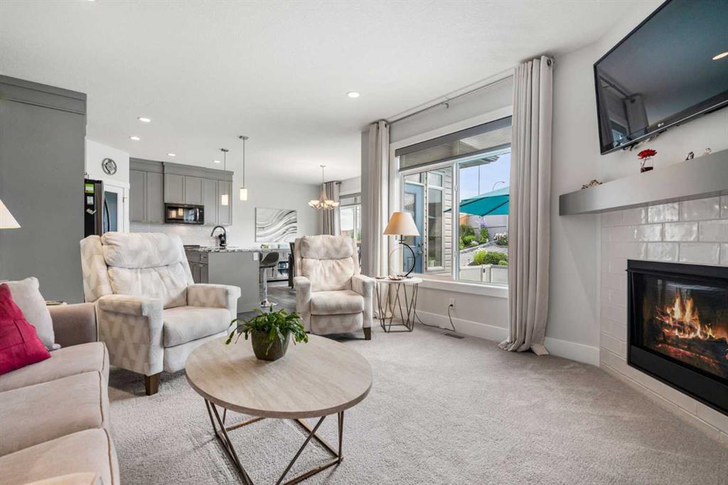 Welcome to this beautifully maintained 4-bedroom bungalow nestled in the sought-after community of Cimarron Vista Court! Thoughtfully designed with comfort and functionality in mind, this home offers 2,444 sq ft of living space (2 bedrooms up, 2 down), and is truly move-in ready. Step inside to a spacious front entry with direct access to an oversized double garage. The main level features soaring 9-foot ceilings, durable vinyl plank flooring, and an impressive open-concept layout that seamlessly connects the kitchen, dining, and living areas. The chef-inspired kitchen boasts quartz countertops, a large central island, corner pantry, and sleek cabinetry—perfect for entertaining or family gatherings. The serene primary suite includes a spa-like ensuite with dual sinks, a deep soaker tub, and a separate shower. Enjoy sunny mornings on your south-facing deck, overlooking a beautiful fully landscaped with turf and fenced backyard—ideal for relaxing or hosting guests. The professionally finished basement offers a spacious recreation area, two generous bedrooms, and a full bathroom. Extras include stair lights with motion sensors, a water softener system, and central-air-conditioning—all included with the home. Don’t miss your chance to own this exceptional property in a quiet, family-friendly cul-de-sac close to schools, parks, and shopping.