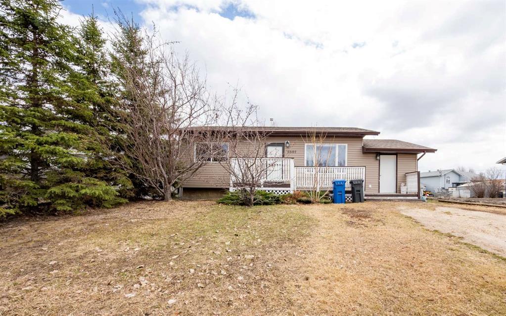 Updated fully developed home with massive detached heated garage , located in quiet Wembley! As you pull up to your new home you will appreciate the updated siding, windows, and shingles. Entering this home with ease with the mudroom that has adequate storage space. Open concept boasted between the kitchen, dining and living room. Kitchen boasts ample cabinet + counter space, and window over the sink that give you a view of your large backyard. Living room is spacious, and complimented by grand window allowing natural light all day long. Remainder of main floor consists of two bedrooms and full bathroom. Heading to the basement you will discover family room, bedroom, office/den, half bathroom, and laundry/utility room. Backyard is fully fenced, with a recent added deck, shed for storage, firepit area and of course detached heated 24x24 garage with alley access. Book your viewing today of this well kept affordable home.