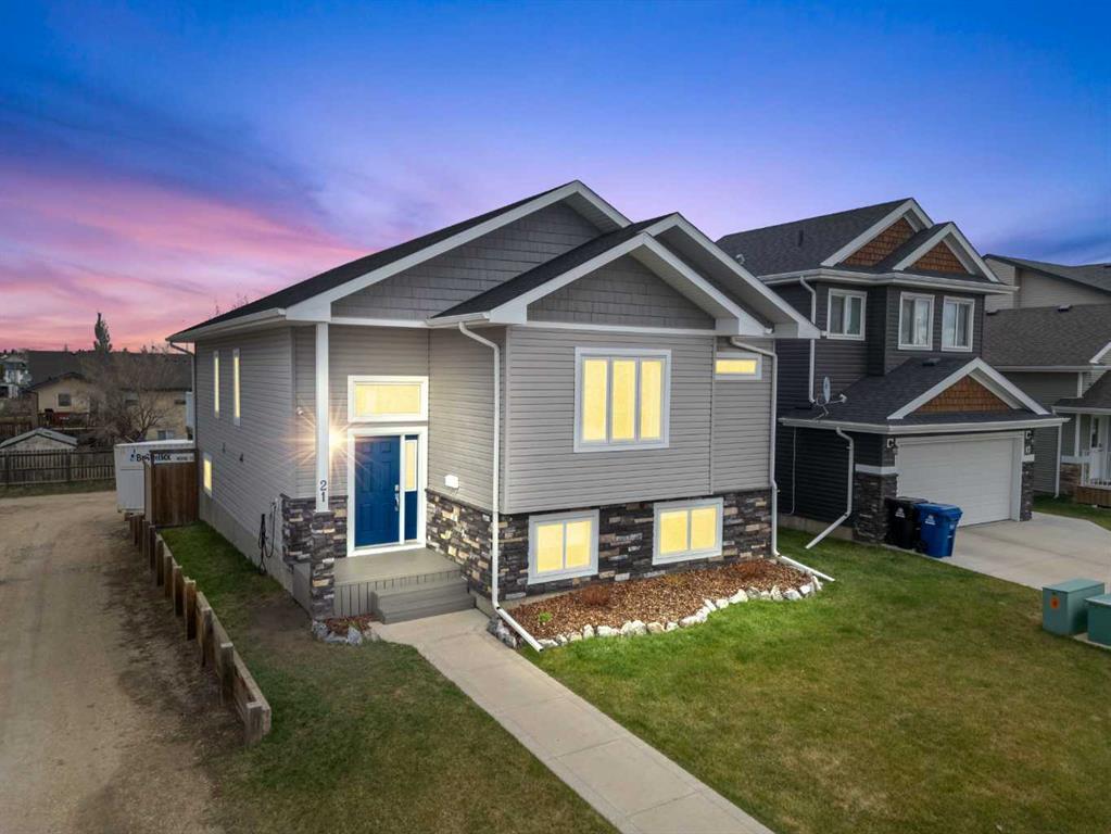 Welcome to this beautifully maintained 5 bedroom, 3 bathroom home, perfectly situated on a quiet close in the heart of Blackfalds. Designed for comfort and functionality, this property features a fully developed walk-out basement and an inviting backyard complete with a fire pit—ideal for entertaining family and friends. The main level boasts an open-concept layout with a modern kitchen featuring stainless steel appliances, a convenient corner pantry, and central air conditioning for year-round comfort. The primary suite offers a walk-in closet and a private ensuite. Additional highlights include roughed-in in-floor heating, a large laundry room, ample storage space, and rear parking. This home is located just minutes from all the amenities Blackfalds has to offer, including schools, parks, shopping, and more.