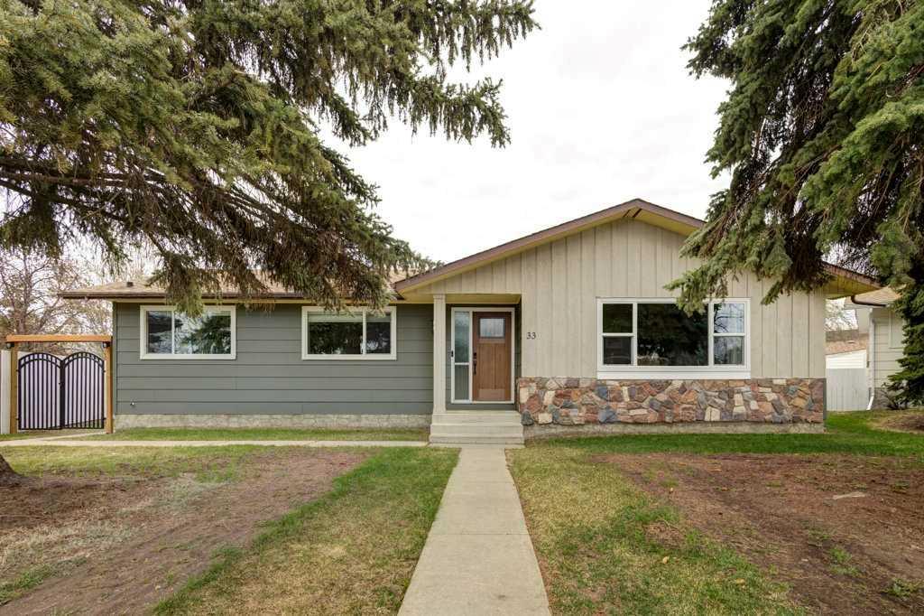 Welcome to 33 Wheatland Place – where charm, space, and privacy come together in this beautifully maintained bungalow on a quiet cul-de-sac in Strathmore. From the moment you arrive, you'll be drawn in by the incredible curb appeal – a mix of cedar accents, beautiful masonry, and composite siding, with new parging and updated soffits and fascia on the way. Situated on a massive lot, this home offers rare privacy, mature landscaping, and room to roam. Step inside to find a bright, freshly painted interior with oversized rooms, new windows throughout, and new trim that adds a crisp, modern touch. The west-facing living room is filled with natural light, while the open-concept kitchen offers ample storage, new appliances, and another large window overlooking the front yard. An enclosed sunroom on the east side invites you to enjoy your morning coffee in comfort. The main floor features a great 4-piece bathroom, two spacious bedrooms, including a primary suite with a 2-piece ensuite, and plenty of storage throughout the home. Downstairs, the fully developed basement includes a wet bar, wood-burning fireplace, generous living space, office/playroom, full bathroom, large laundry area, and more storage. Out back, you'll find an oversized double detached garage with alley access and a huge parking pad big enough for your RV, diesel pusher, truck, or trailer—whatever your lifestyle demands. With central vac, a 100 amp electrical panel, and thoughtful upgrades throughout, this home has been built to last and lovingly maintained. Don’t miss your opportunity to own this one-of-a-kind property that blends comfort, character, and convenience on one of Strathmore’s most desirable lots.