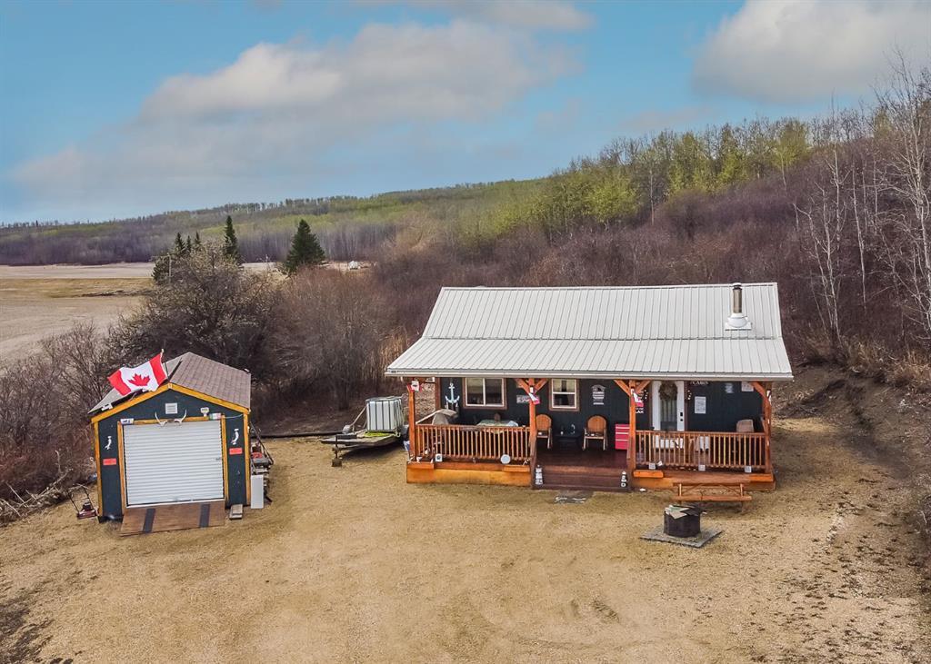 Welcome to Your Riverside Escape, a peaceful haven where the river becomes your backdrop and way of life. With direct access to the Smoky River, enjoy fishing, boating, swimming, and quiet moments by the water, just steps from your door. Nestled among mature trees and surrounded by wilderness, this beautifully maintained property offers a rare blend of comfort, seclusion, and adventure. Built in 2016 by Heritage Cabins, the home is thoughtfully designed for year-round living and the ultimate recreational retreat. Step inside to warm pine walls, custom blinds, and durable vinyl plank flooring. The open-concept layout connects the living, dining, and kitchen areas, creating an inviting space for gathering and relaxing. The kitchen has a fridge, stove, microwave, and pantry for convenience. The main floor includes one bedroom, a bonus room, and a 3-piece bathroom. Upstairs, a spacious loft offers flexible space for additional beds or a cozy rec area. A high-efficiency Blaze King wood-burning fireplace anchors the living space, making it the perfect place to unwind after a day outdoors. The cabin is equipped with a powerful 16k solar panel system (3000 watts, 30 amps), hot water on demand, Wi-Fi and satellite connectivity, and the option to add laundry hookups. Outside, you'll find a covered deck ideal for cooking and dining, an outdoor shower, a fire pit area, and a 12x24 storage shed for all your tools and toys. Sandy beach access invites you to spend your days paddling, lounging, or exploring the shoreline. This property is a dream for outdoor enthusiasts with endless opportunities for boating, fishing, quadding, hunting, hiking, snowmobiling, and cross-country skiing. Whether you're seeking solitude, recreation, or a slower pace, this cozy cabin in Watino Valley Rapids has it all! Annual lot fees are $1785. Book your private showing today and discover the magic of riverside living!