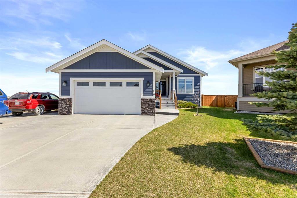 AMAZING OPPORTUNITY, CLOSE TO HOSPITAL, WALKING TRAILS, AND PARKS, IN A NEWER DEVELOPMENT IN OLDS. Custom Built by Jalin Homes. One Owner home. For those looking to accommodate larger families or in-laws this house has a FULL KITCHEN and LIVING AREA in the basement. Basement can be accessed by a SEPARATE COVERED ENTRANCE with heated concrete steps leading down. Beautiful 3-Bedroom plus Front Office, Basement Den, 3 Full Bath, and Double Attached HEATED Garage with wonderful curb appeal in The Vista’s. Situated on a large pie-shaped, fully fenced and landscaped lot with FABULOUS VIEWS to the NE, concrete patio area off the separate entrance, and huge rear deck, this FULLY DEVELOPED property boasts a wonderful and spacious open floor plan on the main level including large front entrance with custom bench and coat rack, VAULTED CEILINGS, fantastic kitchen including stainless steel appliances, quartz countertops, island with breakfast bar, corner pantry, dining area, and comfy living room with cozy gas fireplace. Vinyl Plank flooring throughout makes for a durable choice and easy cleaning. Main floor living area offers so much natural light and direct access to the large 10’ x 29’ NE facing, partially covered deck with a gas BBQ hook-up and offering wide open views. The Main Floor also includes a Front Office, Primary Bedroom with luxurious 3 piece ENSUITE and Walk-in Closet combination, another nice-sized bedroom, mudroom off the garage with sink and laundry hook-ups, and 4 piece bathroom.