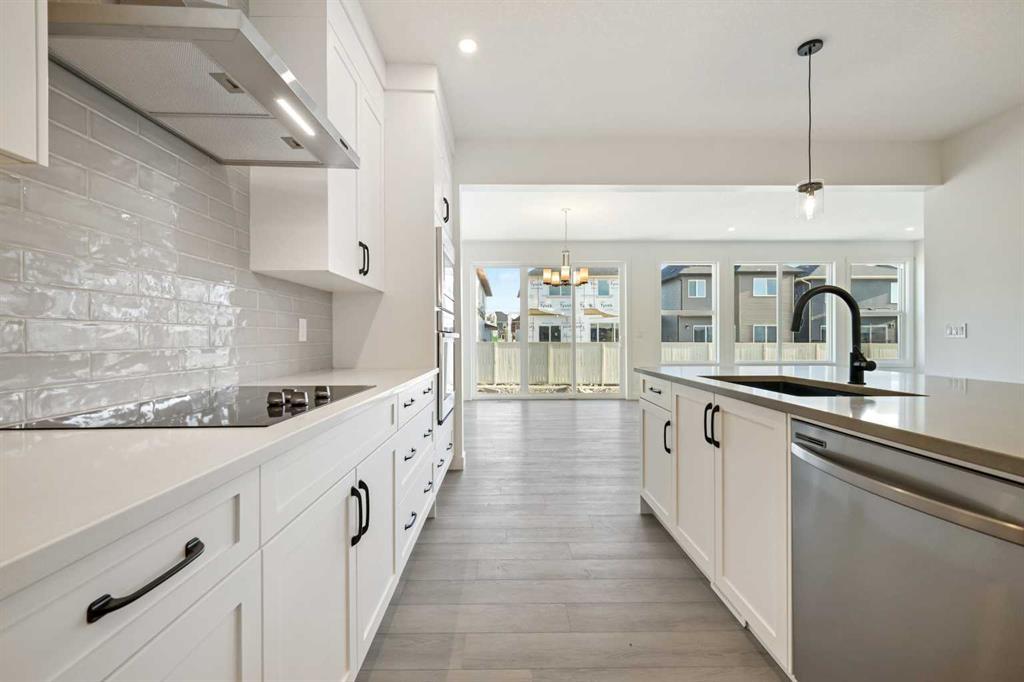 Genesis Builders presents the viola, a stunning soon-to-be completed 2600-plus sq ft home offering a rare four bedrooms upstairs and a fifth bedroom on the main floor, which could also function as an office. Stepping into the foyer, dramatic high ceilings greet you with a stunning open bannister railing; conveniently adjacent is the mud room off the 20’ x 22’ garage. Warm Vinyl plank floors flow through the open-concept main floor. The kitchen is a show stopper and offers stylish Chantilly lace cabinetry, which is offset by a glossy greige backsplash, quartz venatino countertops and a SS appliances package and is accompanied by a spacious pantry. Open to the dining room and living room, which provides a sleek 50’ linear fireplace. A full 4pc bath and flex room with a closet complement this floor. Head up the grand stairwell well to the second floor, which offers 3 generous bedrooms, each with walk-in closets. Kick back and relax in your primary suite, which will be your sanctuary. It offers a sizeable walk-in closet and spa-like ensuite with dual sinks, a soaker tub, and a separate shower. A 4 pc bathroom and convenient upstairs laundry complement this floor. The basement is a blank canvas with upgraded 9’ ceilings and a side entrance. Situated in the desirable Bayside community, a family-friendly community that offers amenities to get you outside. You are steps from Nose Creek Elementary School, the pathways that meander the scenic canals, a brand new community playground complete with a bike park, and so much more. *Photos are of a previously sold model and are representative. Area size was calculated by applying the RMS to the blueprints provided by the builder. Possession is tentative*