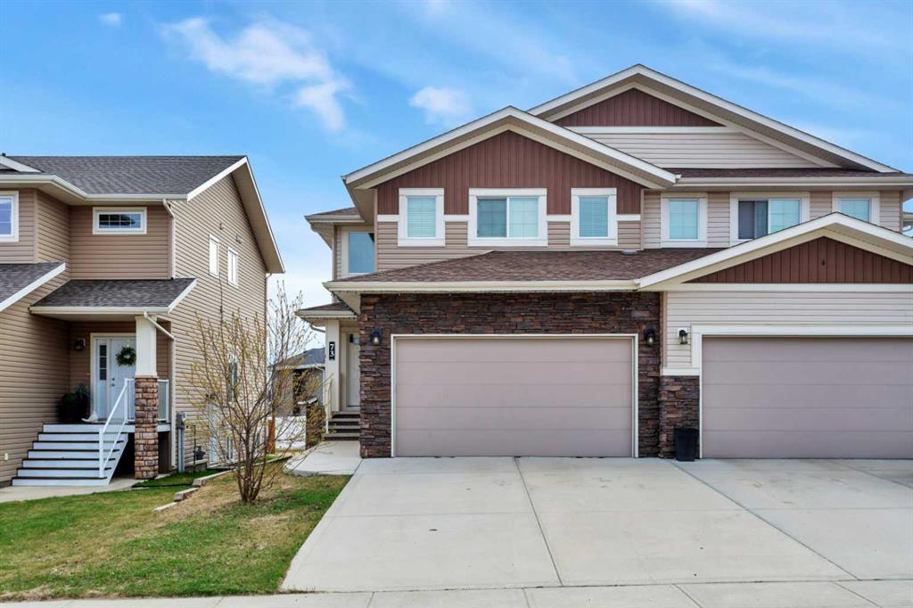Welcome to this beautifully designed duplex that impresses from the moment you arrive. Step inside to a soaring grand entrance that sets the tone for the spacious layout. The open floor plan with rich laminate flooring and a kitchen/dining room with stainless steel appliances. The main floor features an ample sized mudroom off the 2 car garage with a closet and a 2 pc bathroom. This home features three generously sized bedrooms with an upper floor laundry room including a luxurious primary suite complete with a four-piece ensuite for your comfort and privacy. This move-in ready home offers both style and functionality, ideal for families or those looking for extra space in a vibrant community