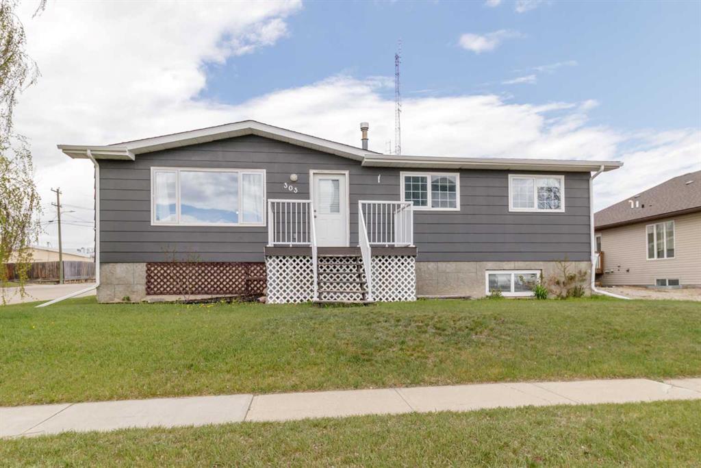 Welcome to 303 Railway Avenue in Trochu!! An ideal family home with unbeatable features and updates throughout!! This spacious 5-bedroom, 2-bathroom bungalow includes a bright, fully finished 2-bedroom basement suite (illegal), perfect for extended family or rental income. The main floor offers a bright open layout with updated flooring, windows, and a stylish kitchen that flows into the dining area and living room. Step outside to a huge, fully fenced yard with mature trees, an apple fruit tree, and a dedicated dog run—perfect for pets and outdoor lovers. Car enthusiasts or hobbyists will love the rare quadruple car garage and access to RV parking. Numerous functional stylish updates throughout, 2019 water heater, roof shingles replaced in 2022. Situated on a large corner lot in a quiet neighborhood close to amenities, walking paths, entertainment, restaurants, and shopping. This move-in-ready home is packed with space, value, and opportunity.
